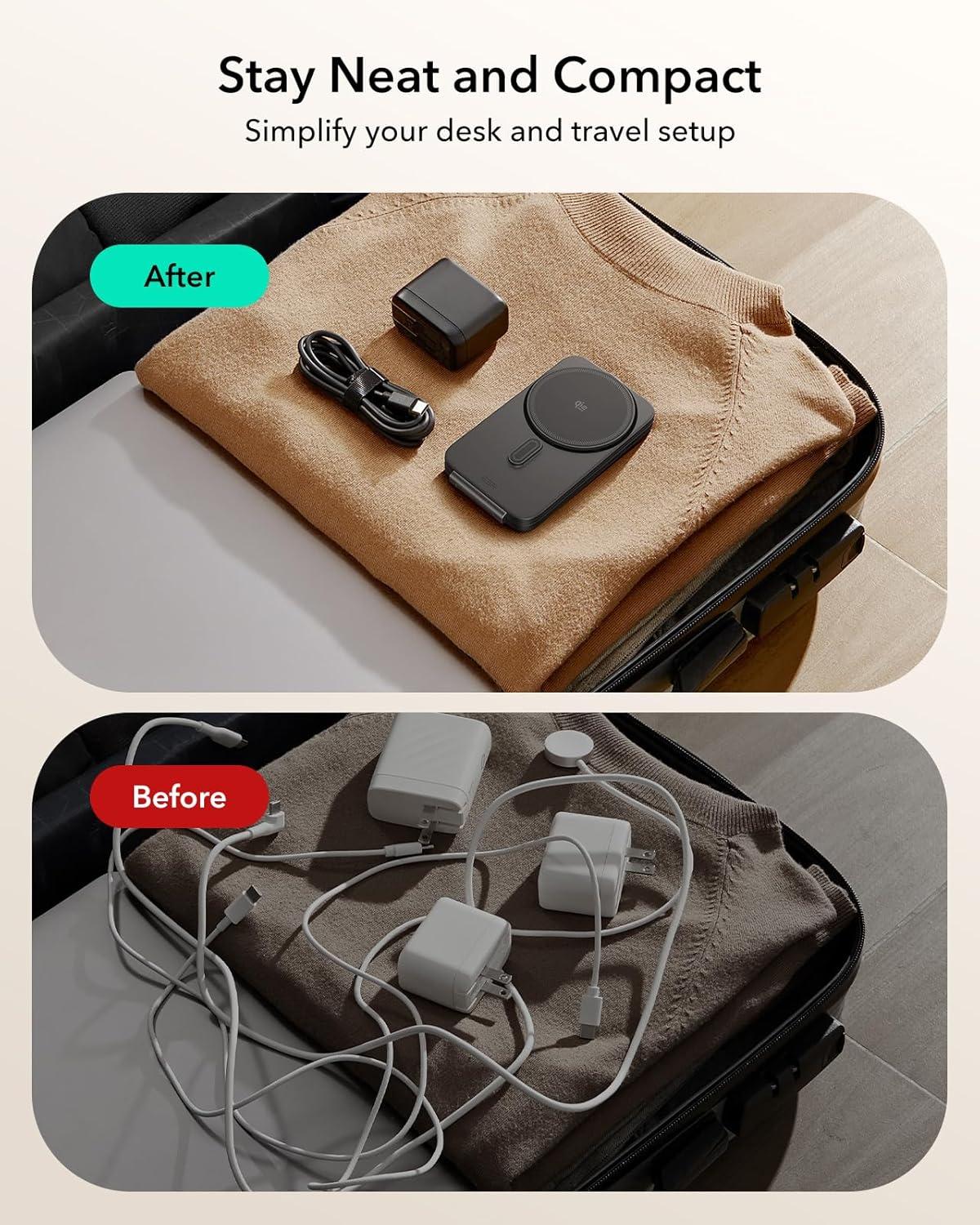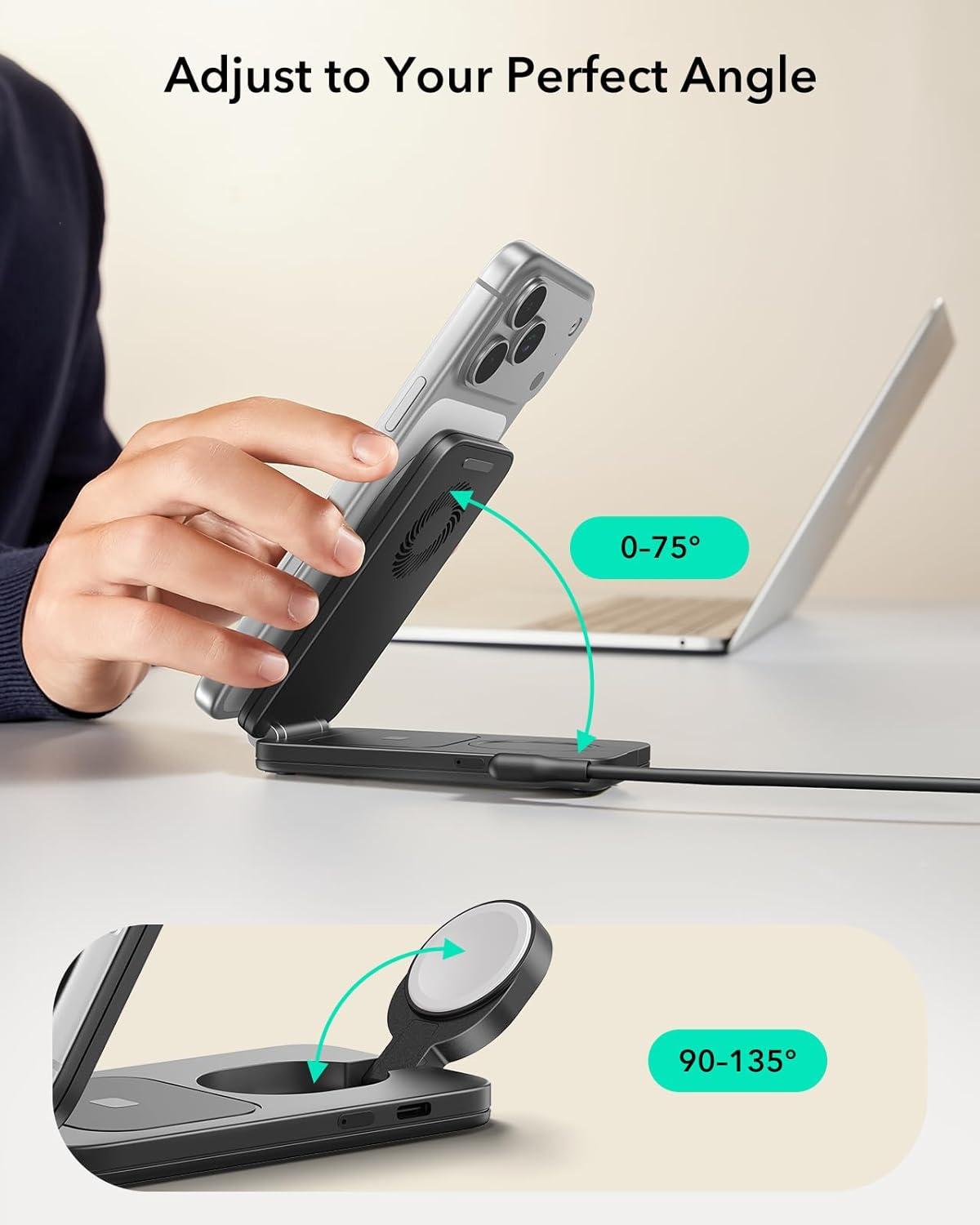 Ultra-Compact Foldable Design: this 3-in-1 charging station measures only 4.33 x 2.44 x 0.62 inches when folded, making it portable and easy to carry; with its compact design, this travel charger for multiple devices fits easily in a backpack or bag for convenient charging anywhere
