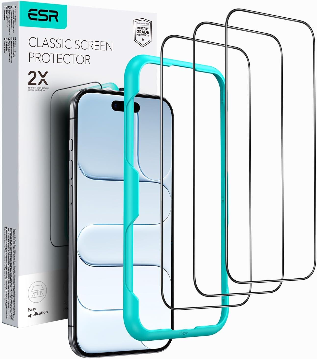 ESR 3 Pack for iPhone 16e/iPhone 14/iPhone 13/iPhone 13 Pro Screen Protector, [9H Hardness] [Military Grade Shatterproof] Tempered Glass Film with Easy Installation Tool, Scratch Resistant(3 Pack)