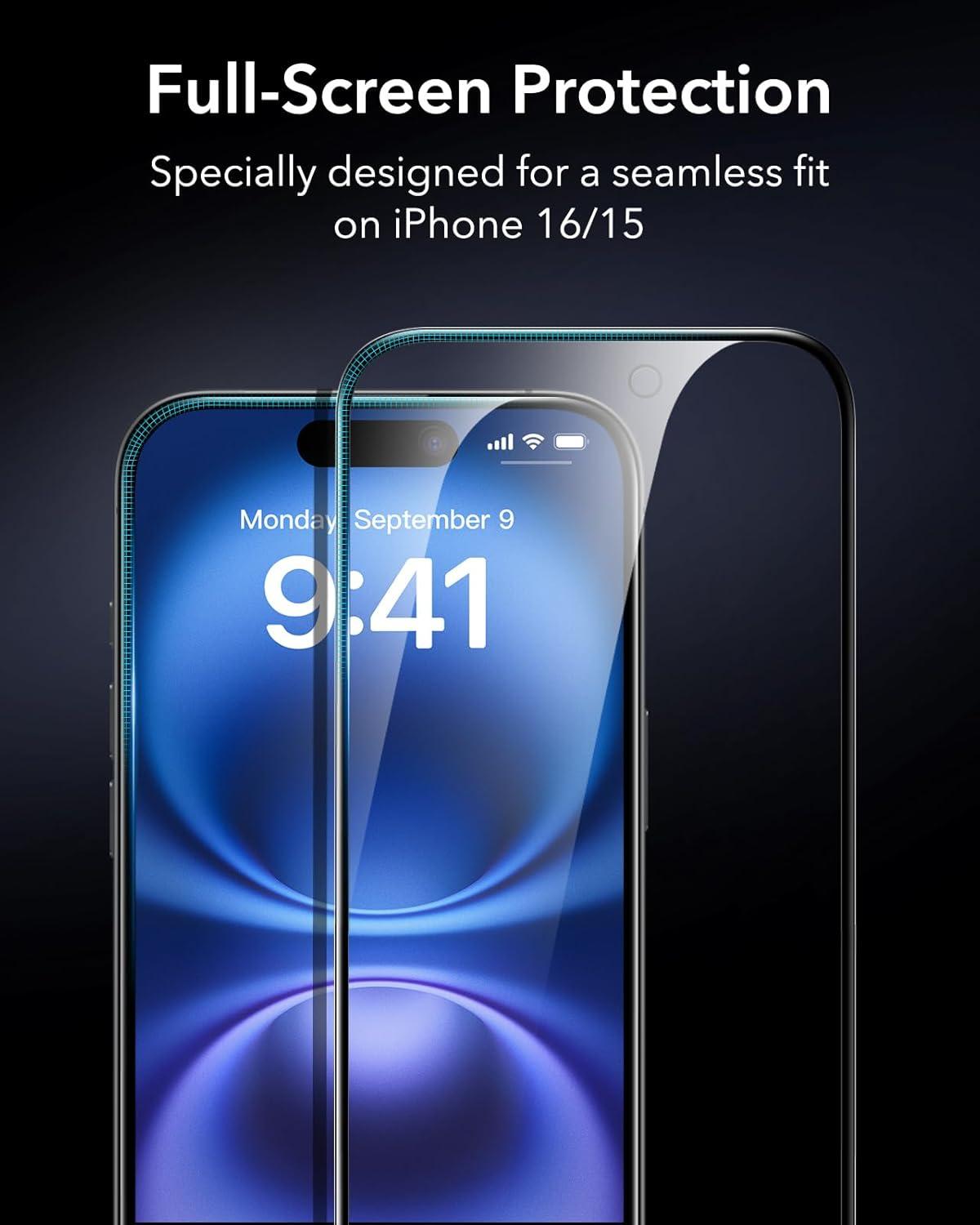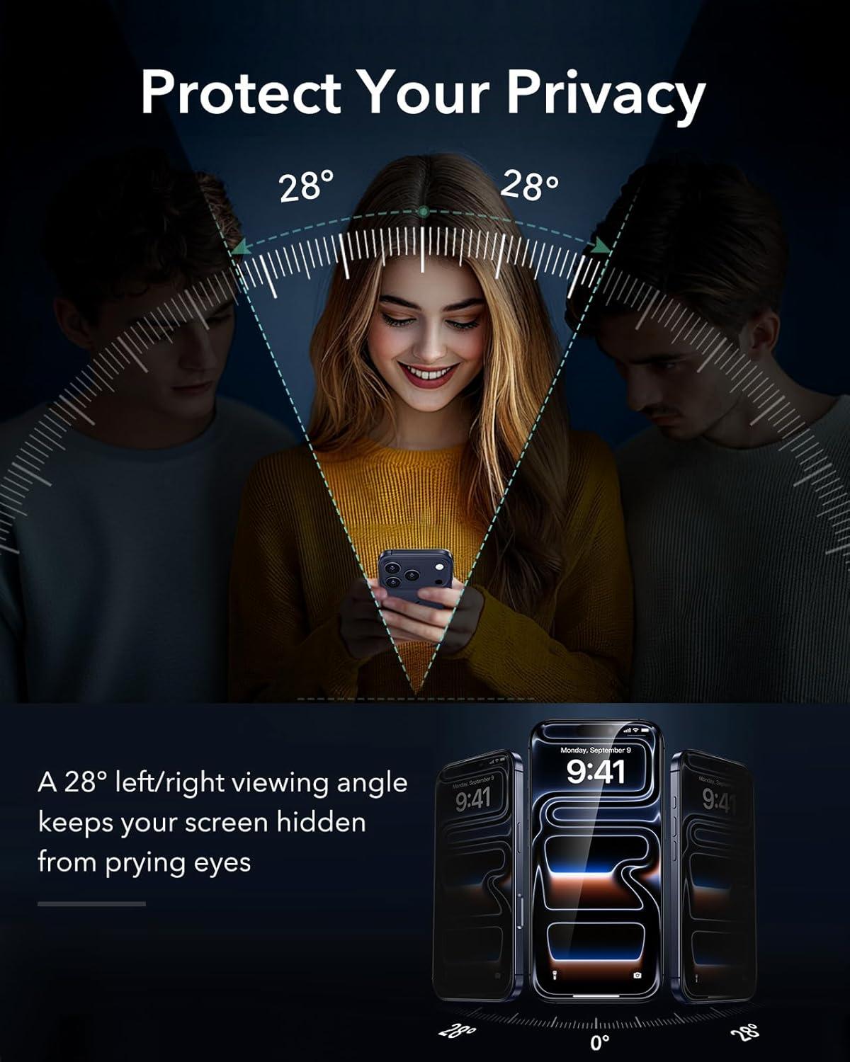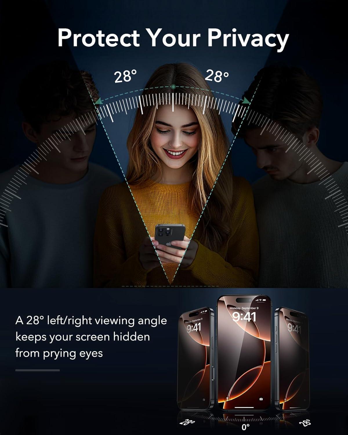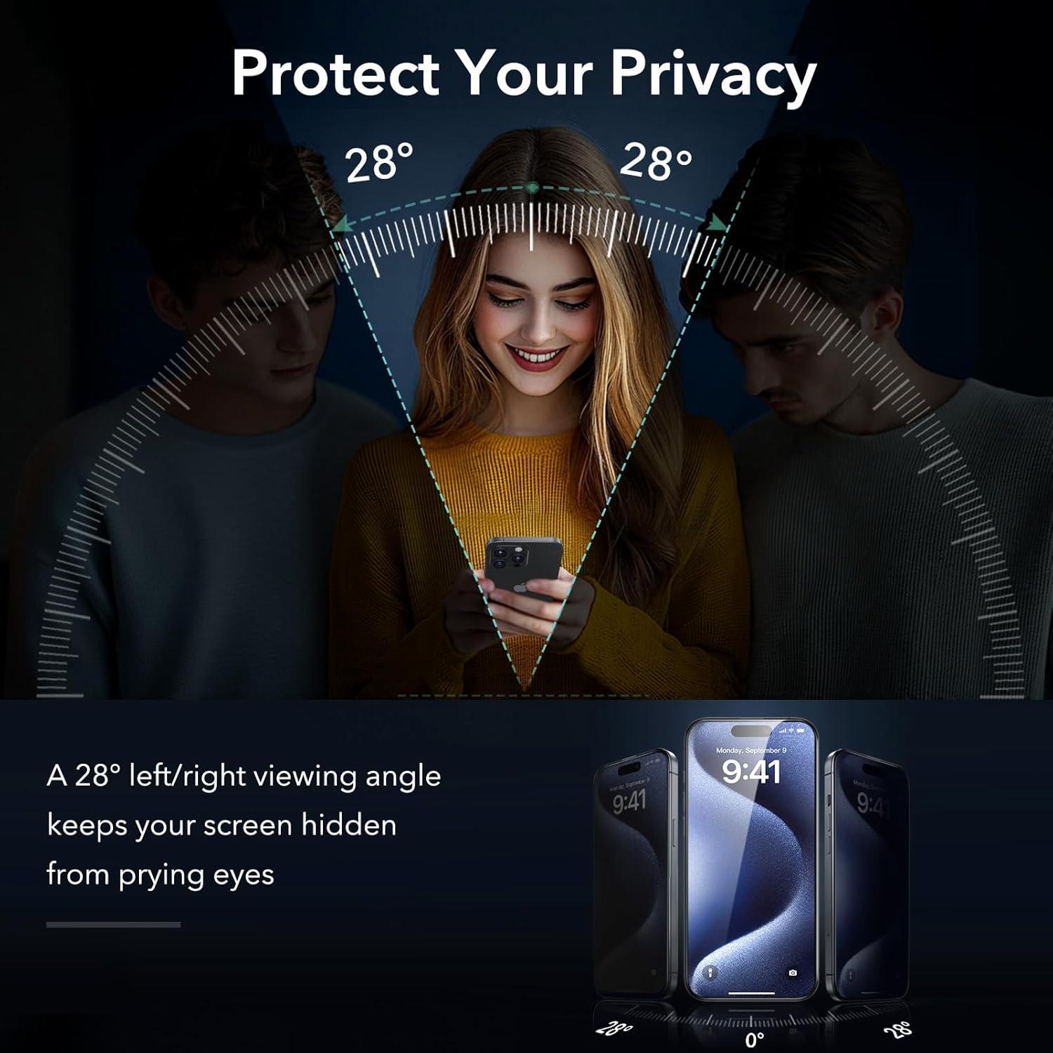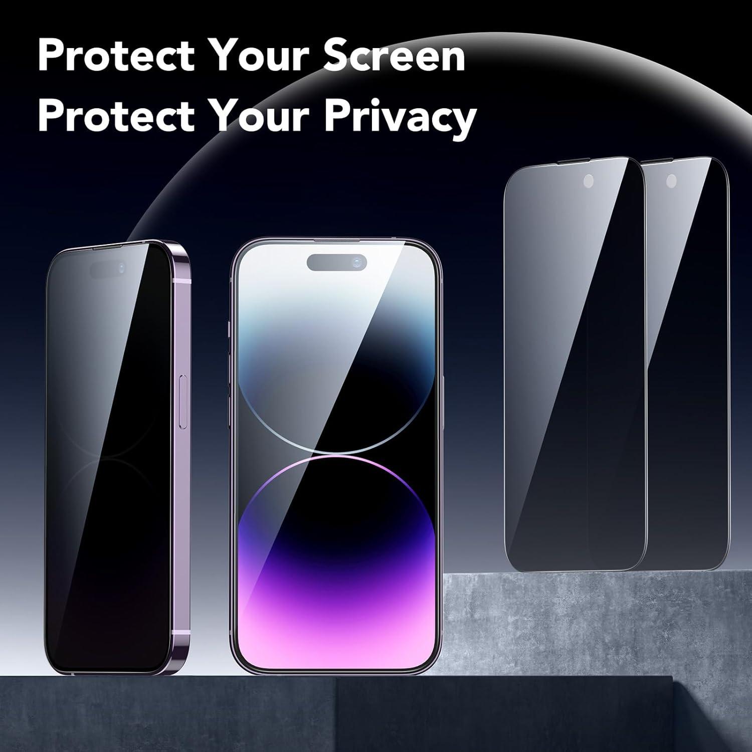 ESR 3 Pack for iPhone 16e/iPhone 14/iPhone 13/iPhone 13 Pro Screen Protector, [9H Hardness] [Military Grade Shatterproof] Tempered Glass Film with Easy Installation Tool, Scratch Resistant(Privacy 3 Pack)