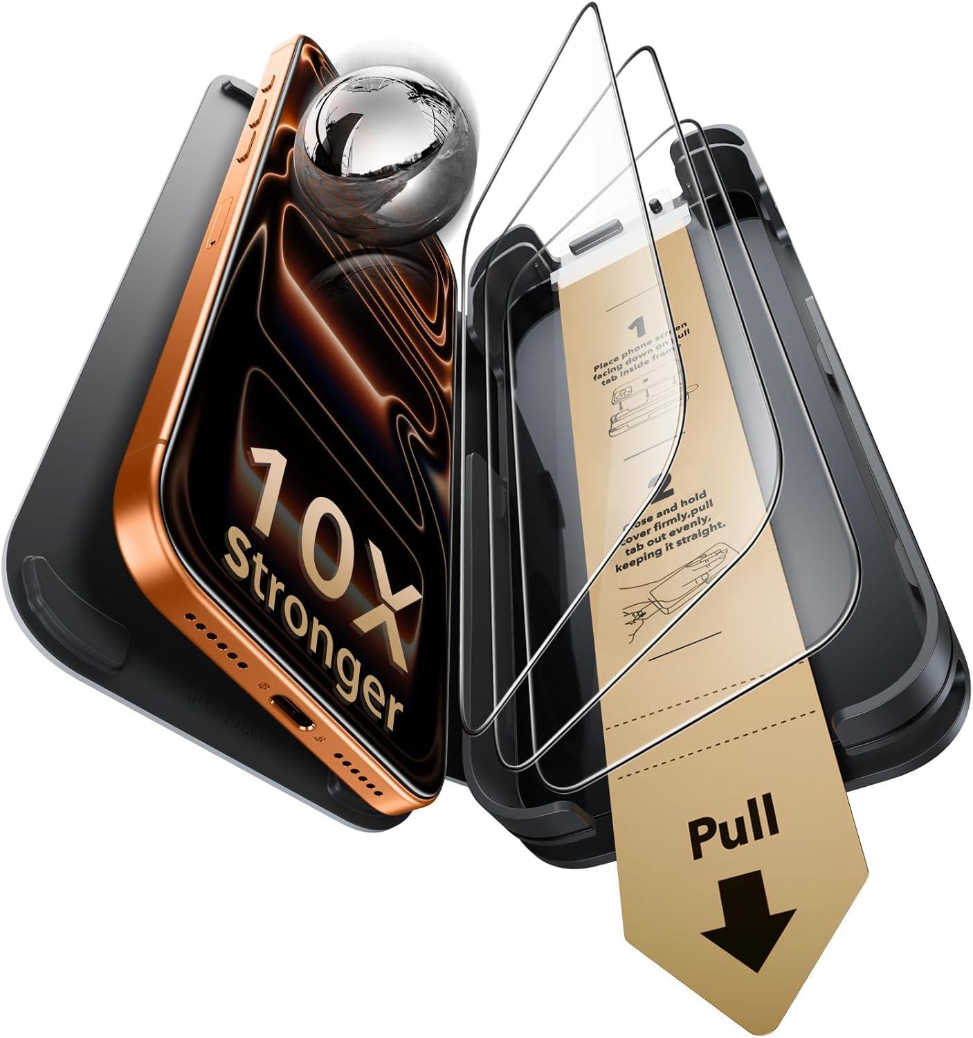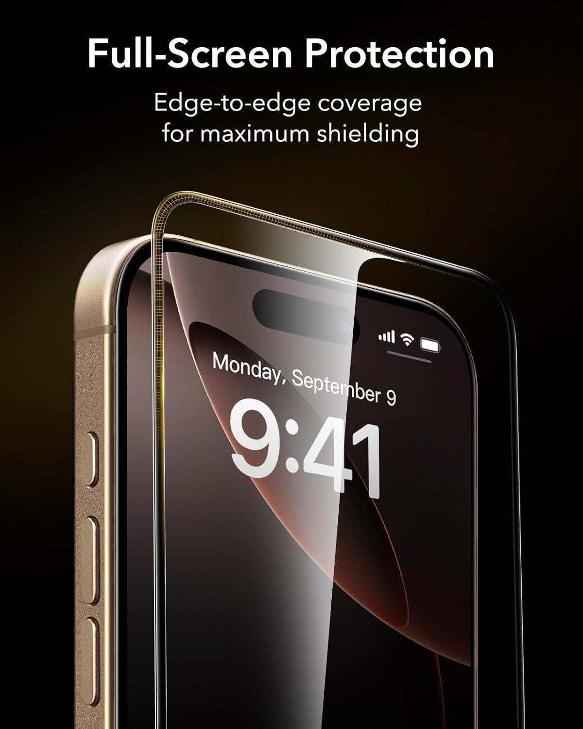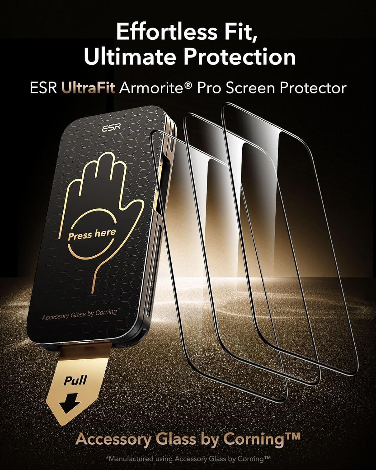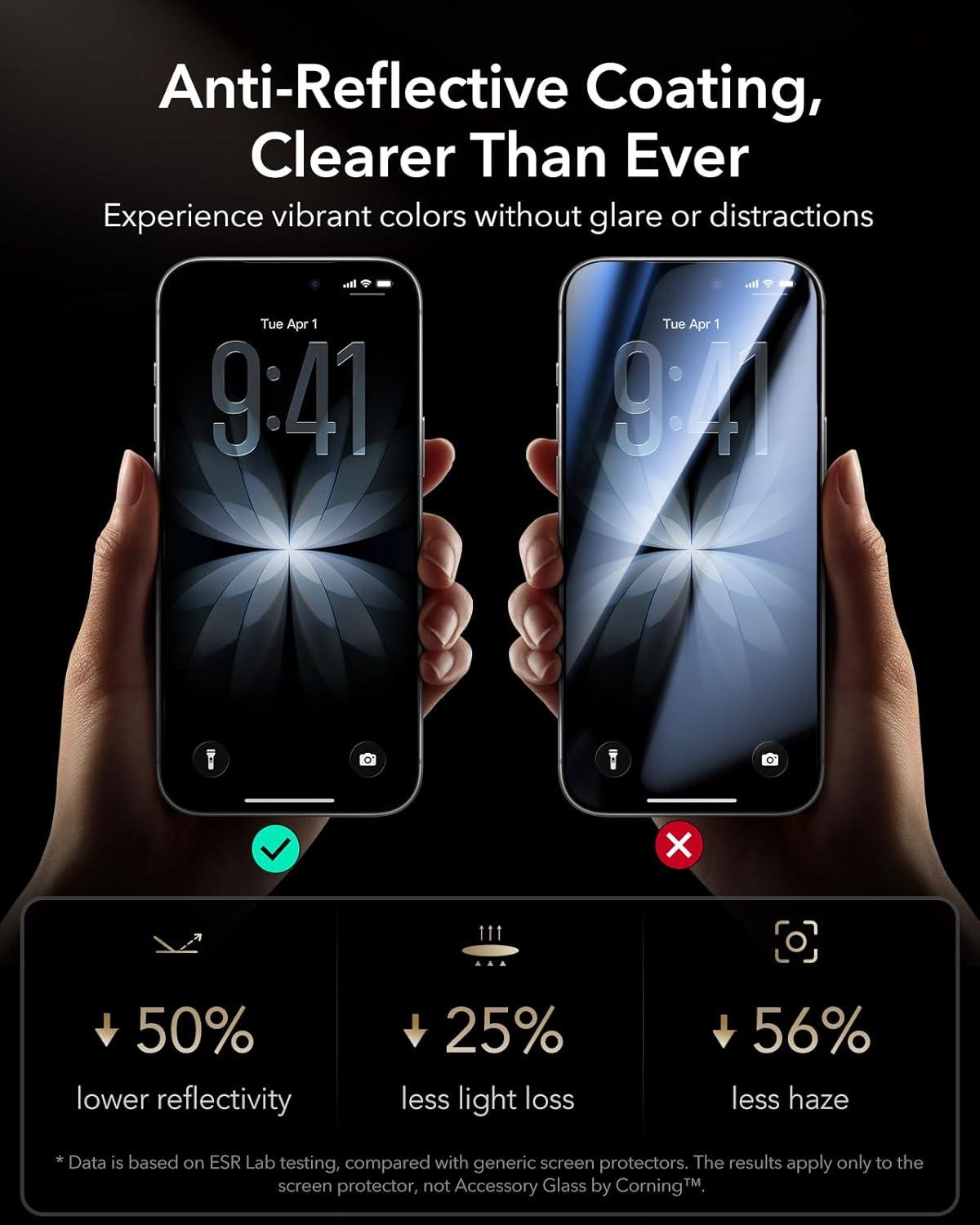ESR Accessory Glass by Corning™ 3 Pack 9H+ Glass for iPhone 17 Pro Max Screen Protector, with AR Anti-Reflective Technology, Military Grade Shatterproof & Durable with UltraFit Tray(3 Pack)