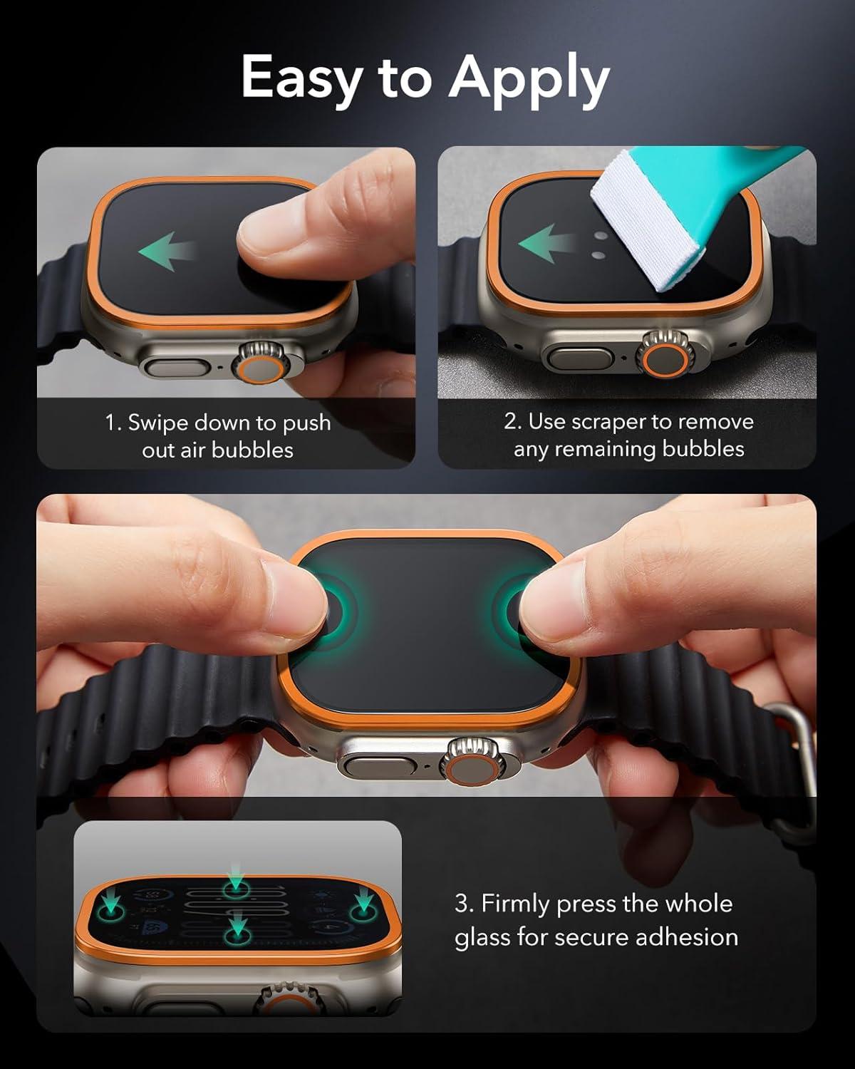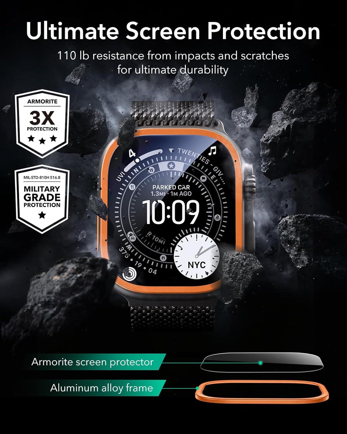 ESR Armorite Screen Protector for Apple Watch Ultra 3 2025 /Ultra 2 /Ultra (49 mm), Military Grade Protection, Tempered Glass Film with Aluminum Alloy Frame, Anti-Scratch, 2 Pack, Orange(Orange)