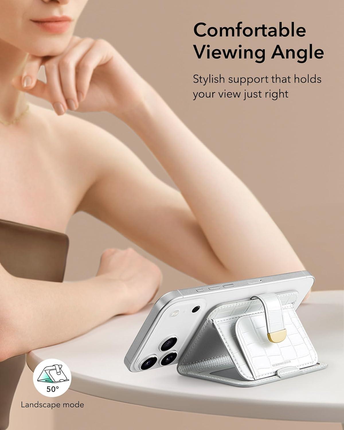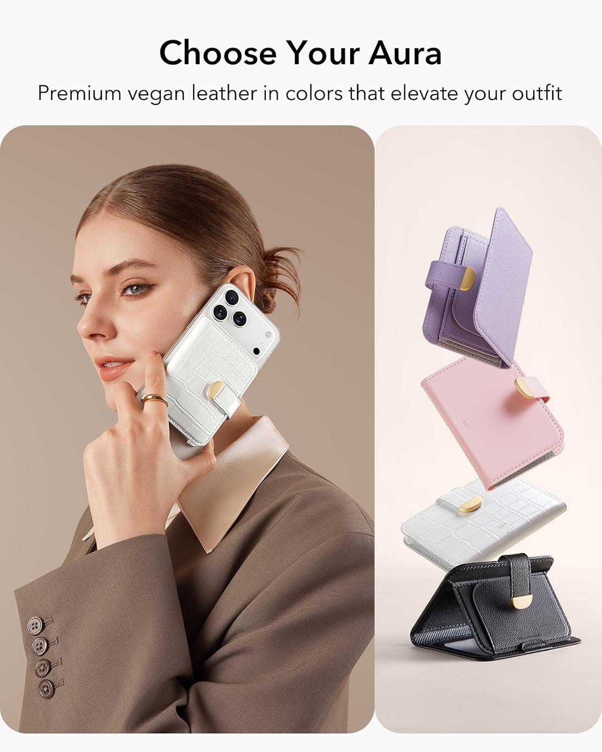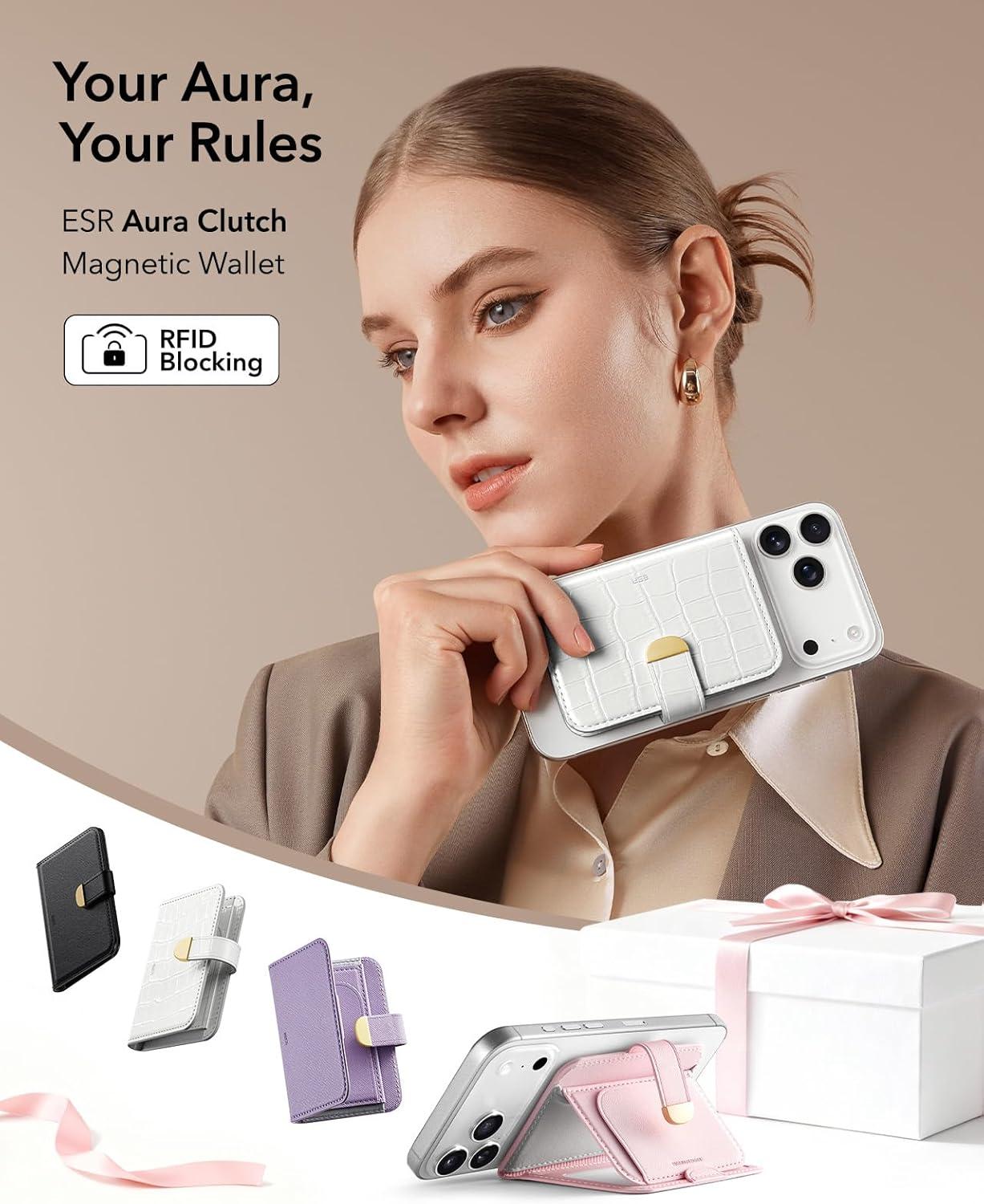 ESR Aura Clutch for MagSafe Wallet for Women, 5-Card Holder, RFID Blocking, MagSafe Sticker Included, Magnetic Wallet for iPhone 17/16/15/14/13/12 Series and Select Samsung Devices, Pearl White Croc(Aura Clutch-Pearl White Croc)