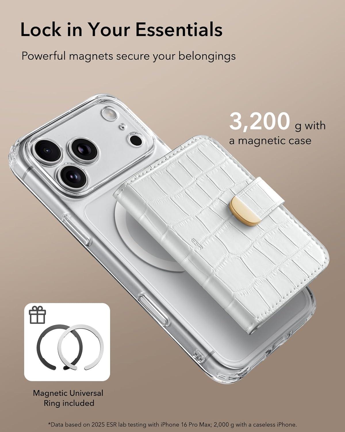 Wide Compatibility: includes 2 ESR Magnetic Rings; for iPhone 17/16/15/14/13/12 series, Google Pixel 7-10 Series and Samsung Galaxy S25 Plus/S25 Ultra/S24 Plus/S24 Ultra/S23 Plus/S23 Ultra; not compatible with iPhone 13/12 mini or Samsung S25/S24/S23 base models