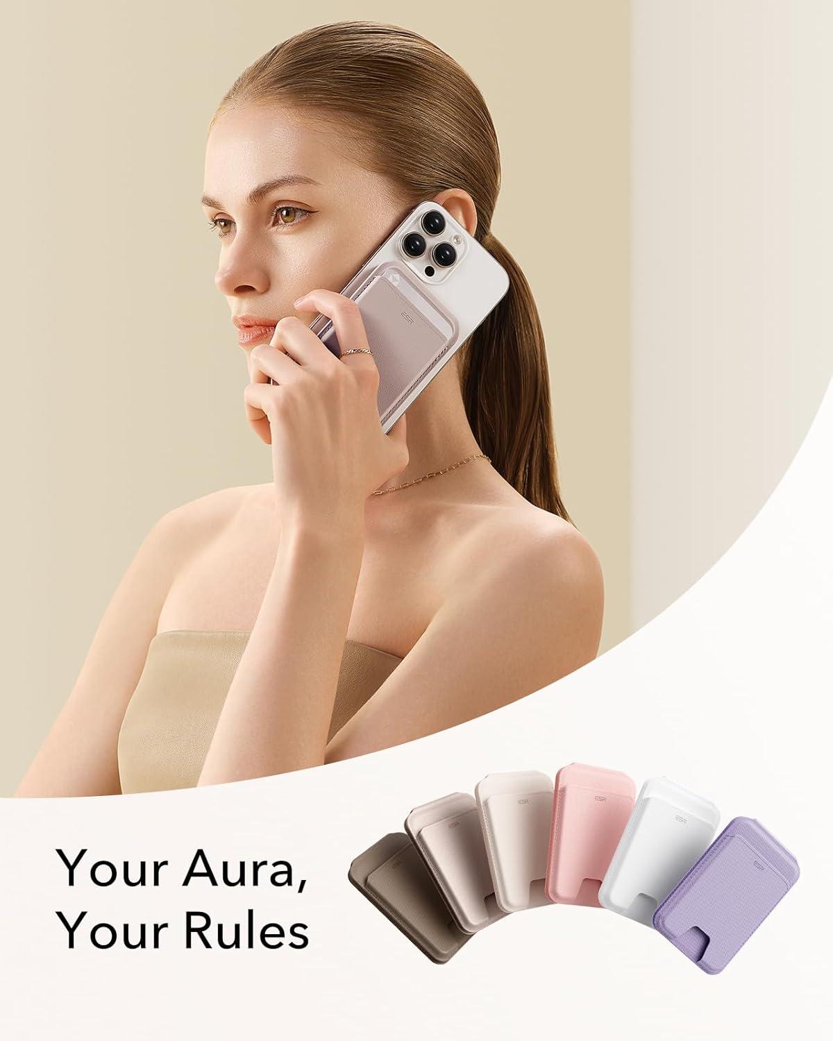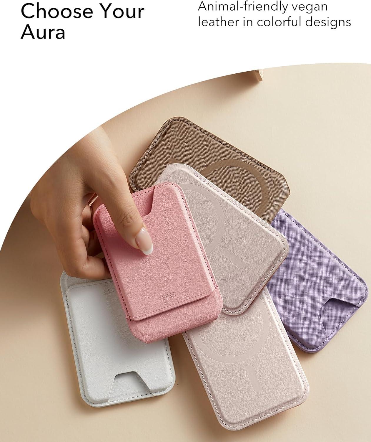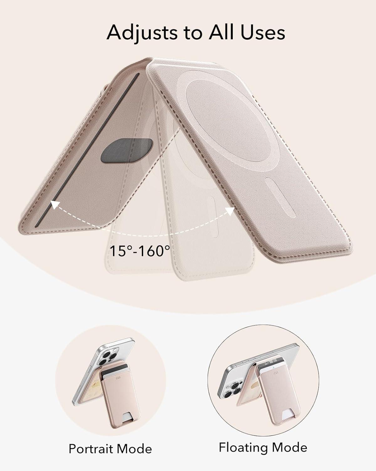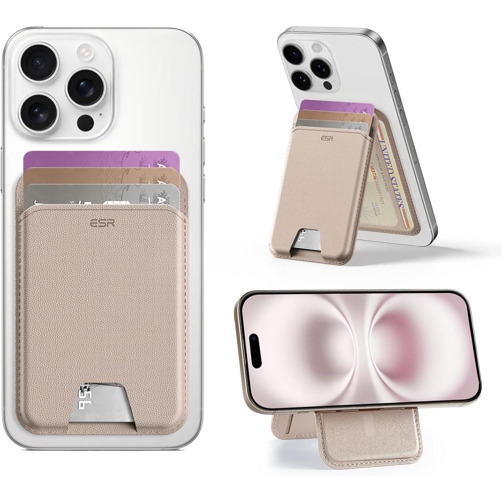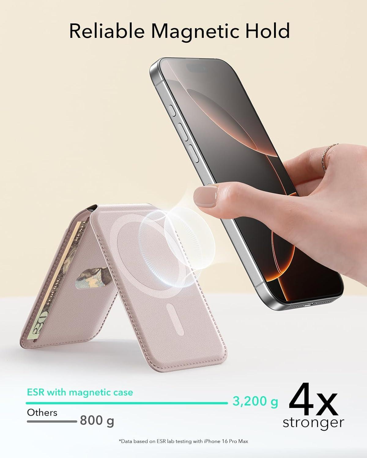 ESR Aura for MagSafe Wallet Stand w Grip, RFID Blocking w MagSafe Ring, 5 Card Holder for Phone Case, Magnetic Wallet for iPhone 17/16/15/14/13/12(Not for Mini), Selected Samsung,Desert Titanium(Aura-Light Pink-5 Cards)