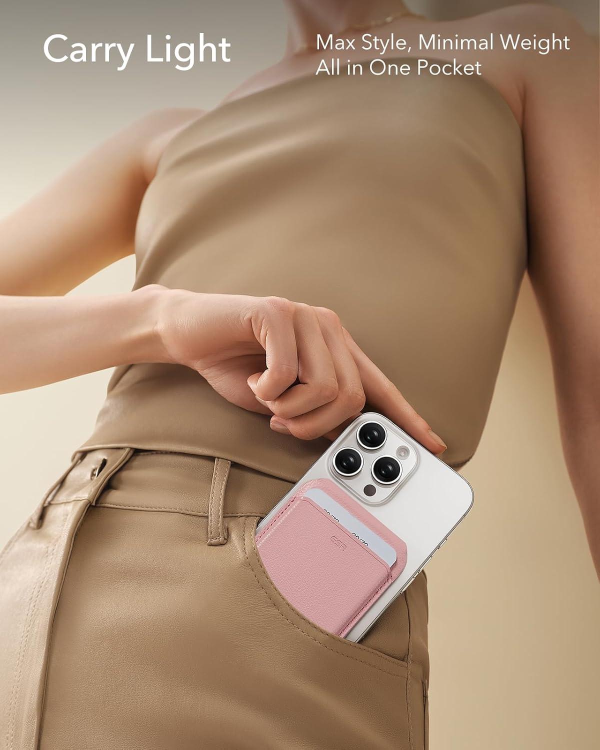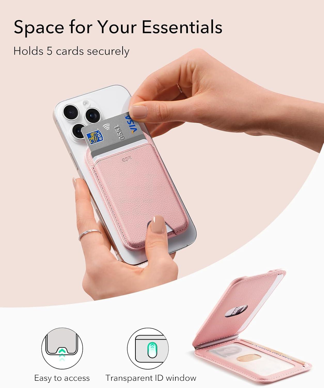ESR Aura for MagSafe Wallet Stand w Grip, RFID Blocking w MagSafe Ring, 5 Card Holder for Phone Case, Magnetic Wallet for iPhone 17/16/15/14/13/12(Not for Mini), Selected Samsung,Desert Titanium(Aura-Pink-5 Cards)