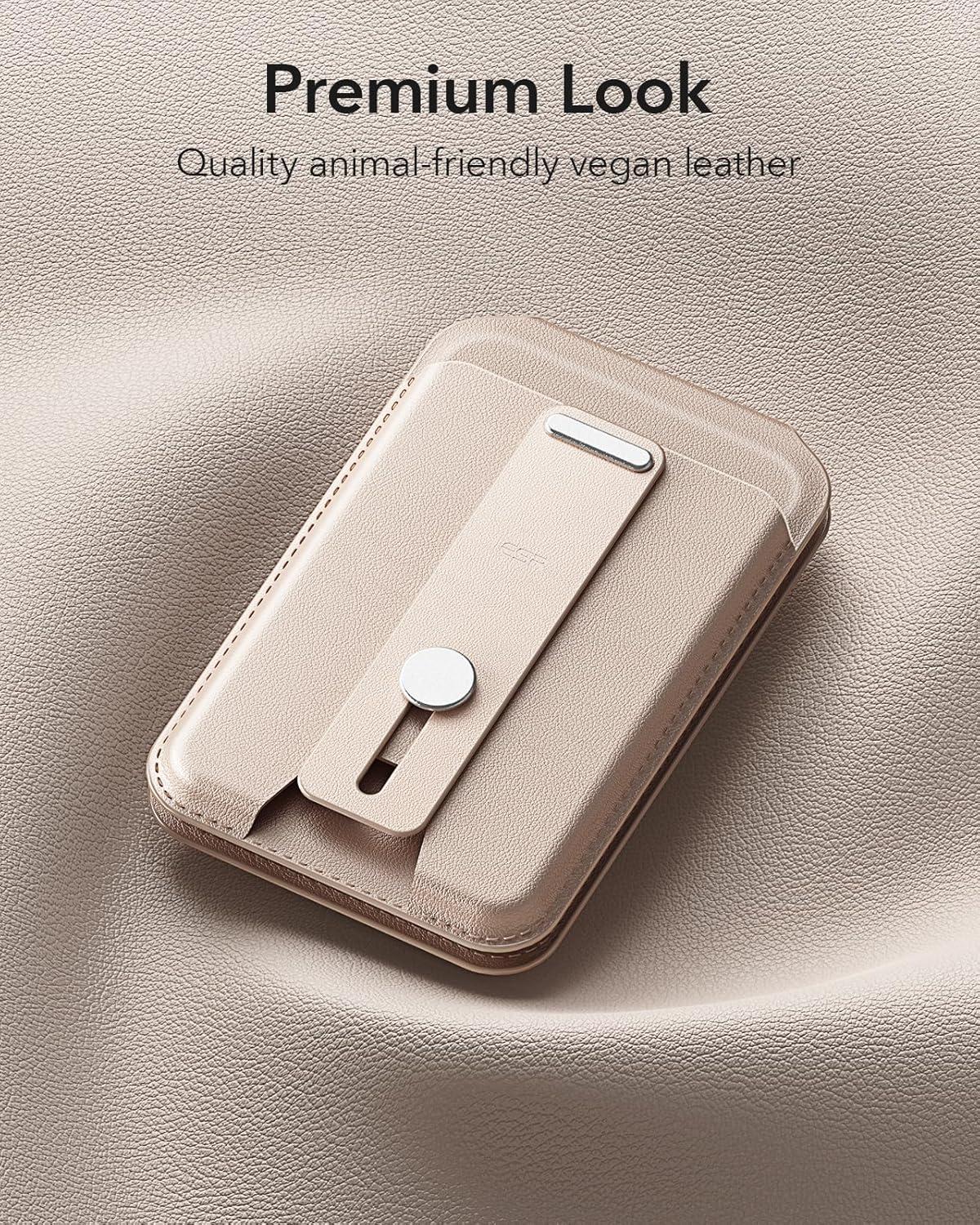 ESR Aura for MagSafe Wallet Stand w Grip, RFID Blocking w MagSafe Ring, 5 Card Holder for Phone Case, Magnetic Wallet for iPhone 17/16/15/14/13/12(Not for Mini), Selected Samsung,Desert Titanium(Grip-Desert Titanium-5 Cards)