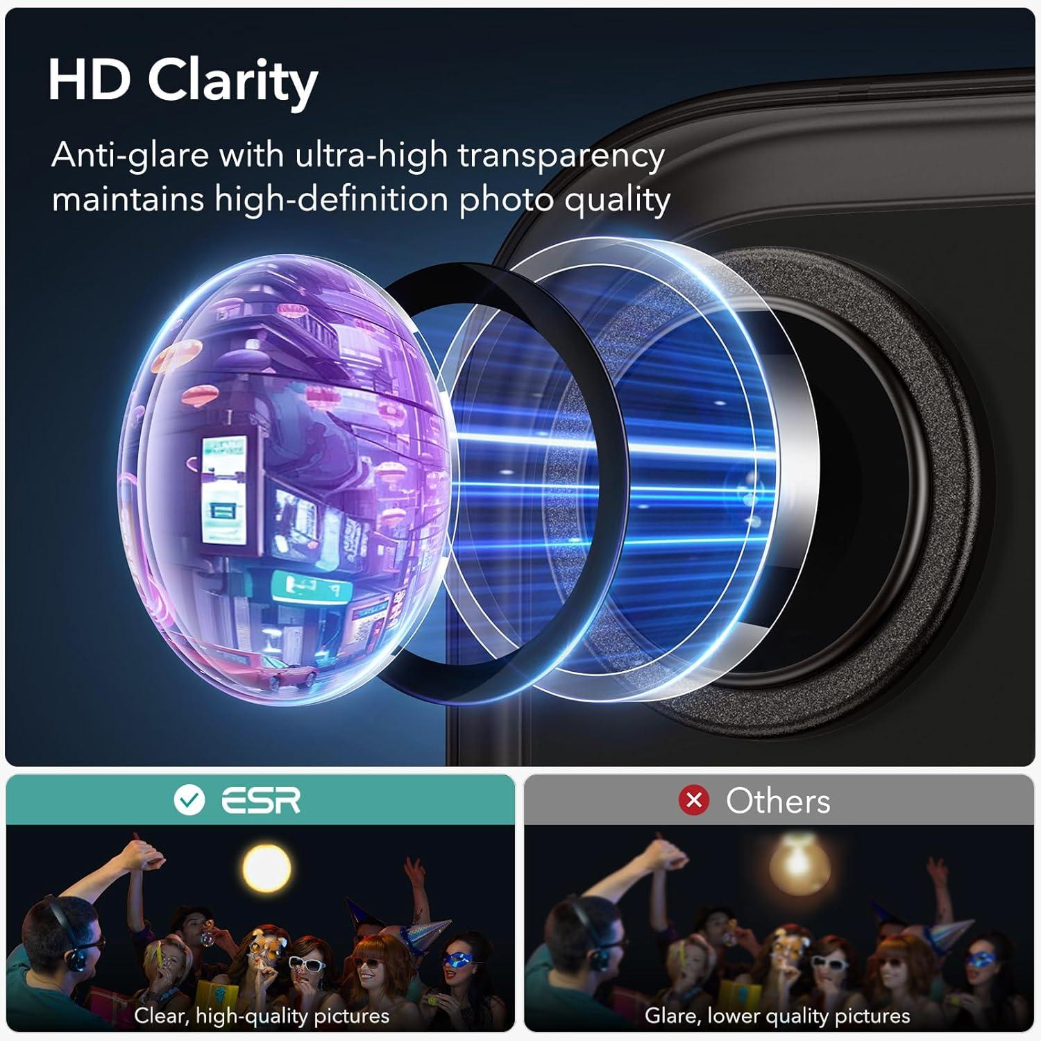 ESR Camera Lens Protector for iPhone 17 Pro Max/17 Pro/16 Pro Max/16 Pro/15 Pro Max/15 Pro/14 Pro Max/14 Pro, Ultra-tough HD Individual Camera Protectors, Ultra-thin Tempered Glass, 1 Pack, Black(Clear 2PACK)