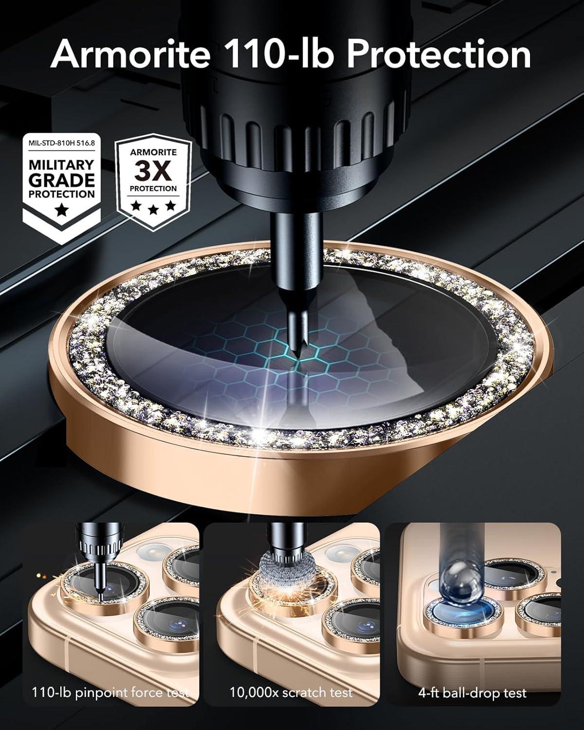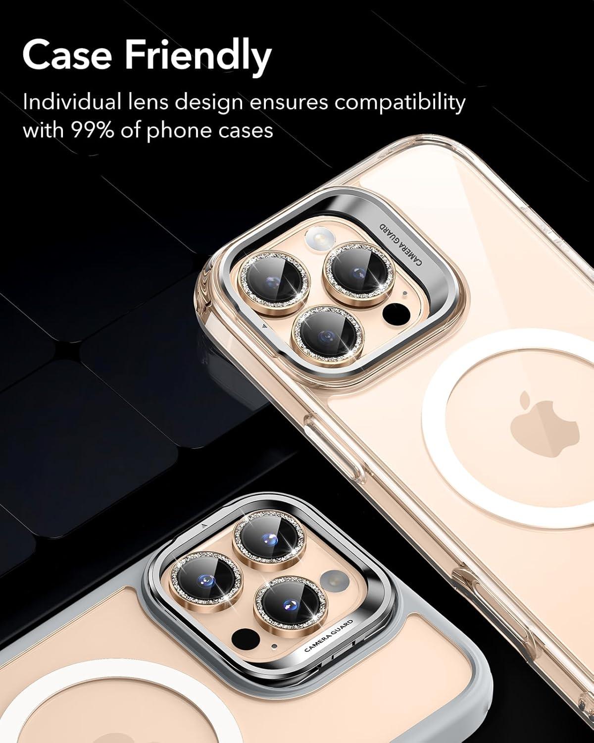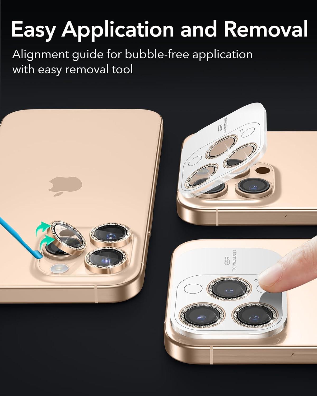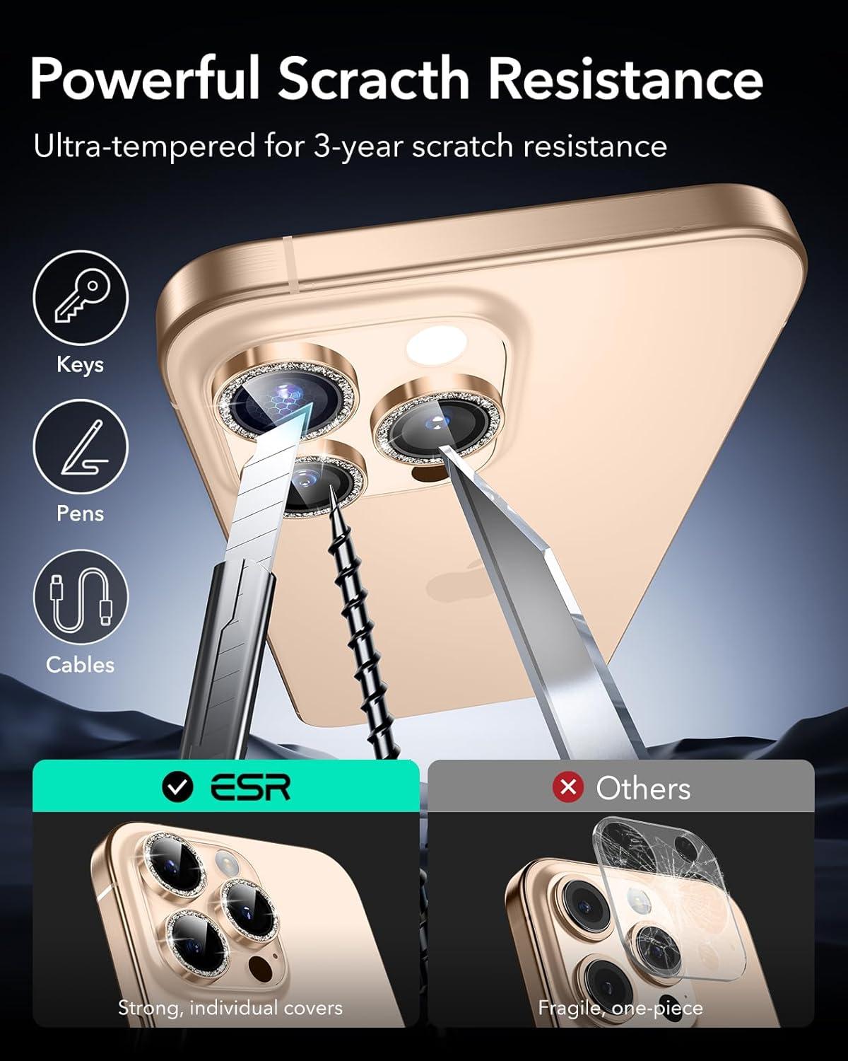 ESR Camera Lens Protector for iPhone 17 Pro Max/17 Pro/16 Pro Max/16 Pro/15 Pro Max/15 Pro/14 Pro Max/14 Pro, Ultra-tough HD Individual Camera Protectors, Ultra-thin Tempered Glass, 1 Pack, Black(Desert Titanium Shimmer)