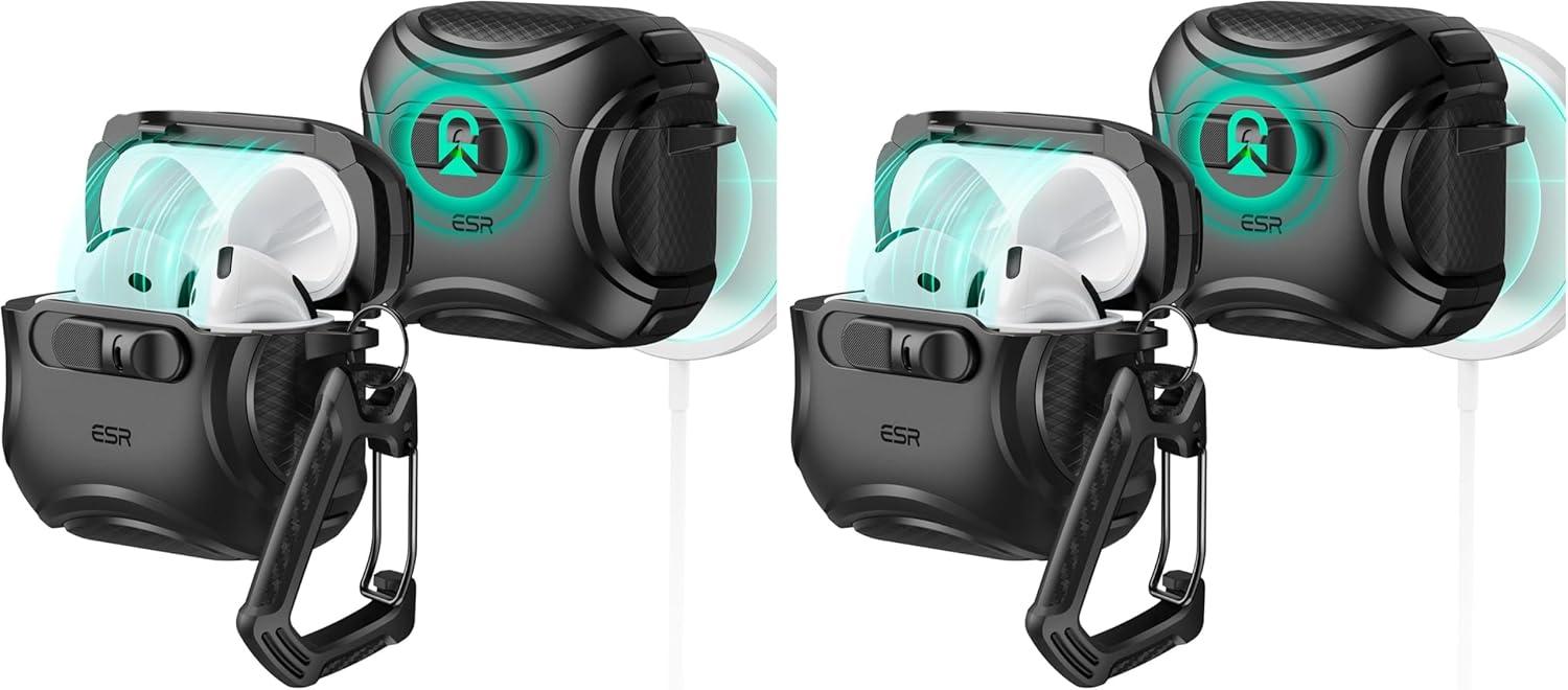 ESR for AirPods 4 Case, Compatible with AirPods 4 Generation Case (2024) (USB-C), Compatible with MagSafe, Drop-Proof Lock, Easy Open, Cyber Series, Army Green(Black)