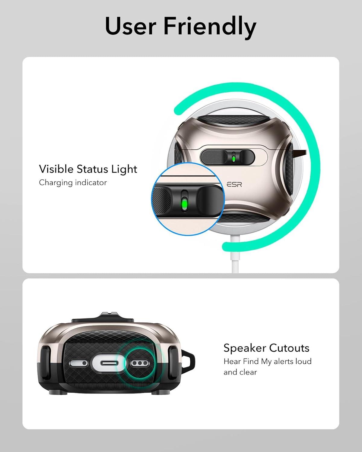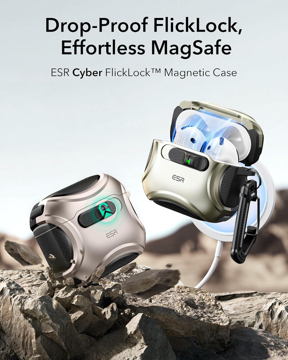 ESR for AirPods 4 Case, Compatible with AirPods 4 Generation Case (2024) (USB-C), Compatible with MagSafe, Drop-Proof Lock, Easy Open, Cyber Series, Army Green(Desert Titanium)