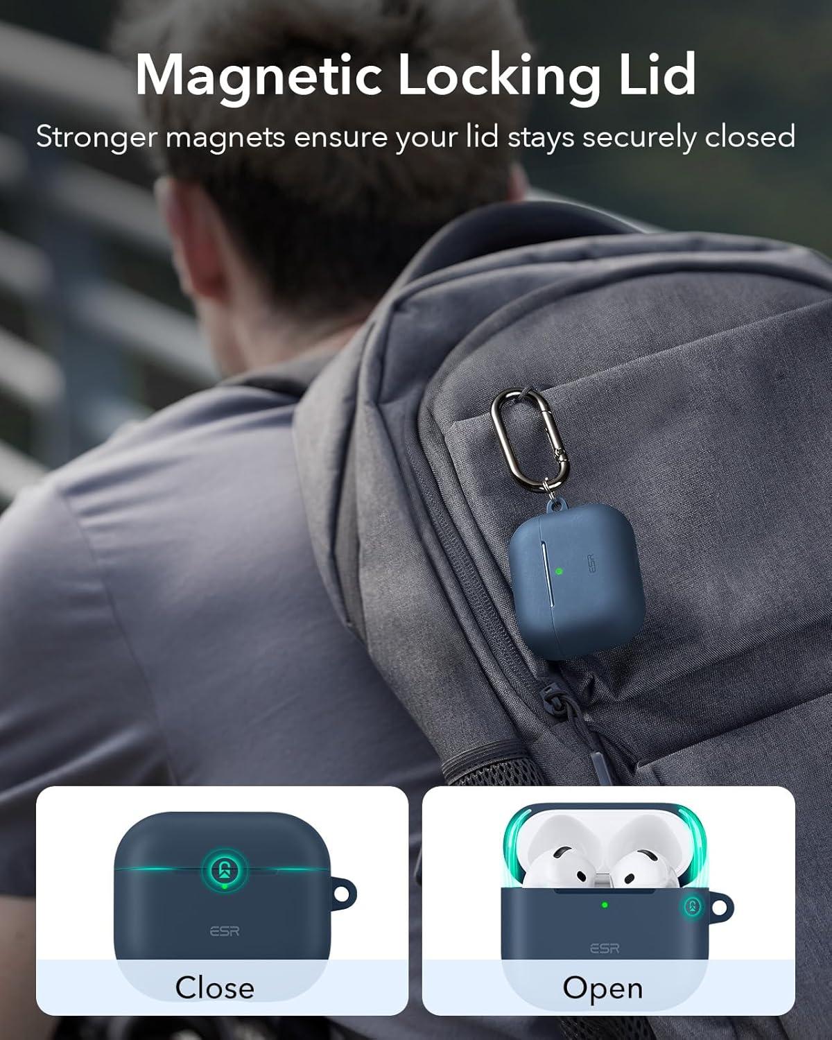 ESR for AirPods 4 Case (HaloLock), Compatible with AirPods 4th Generation Case (2024) (USB-C), Compatible with MagSafe, Full Drop Protection Cover with Carabiner, Magnetic Lid Lock, Black(Blue)