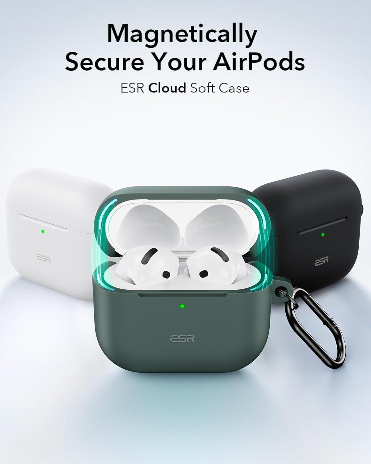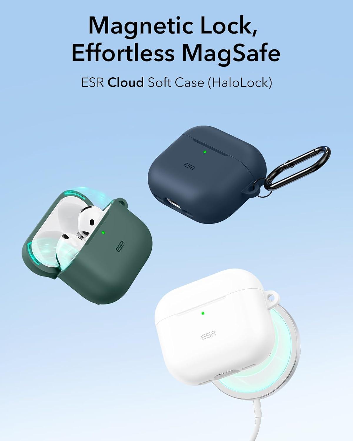 ESR for AirPods 4 Case (HaloLock), Compatible with AirPods 4th Generation Case (2024) (USB-C), Compatible with MagSafe, Full Drop Protection Cover with Carabiner, Magnetic Lid Lock, Black(Green)