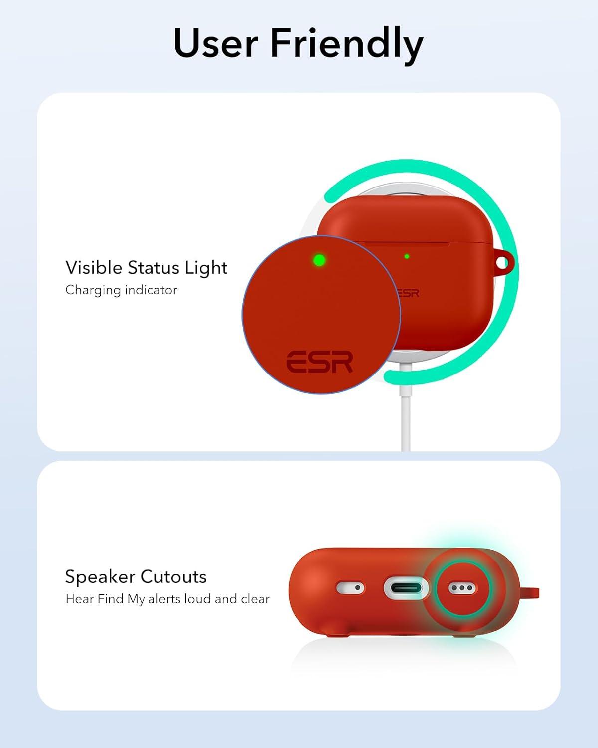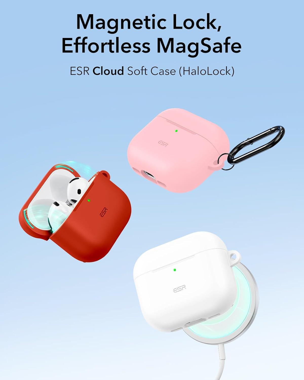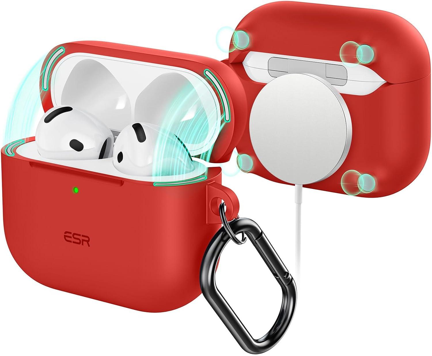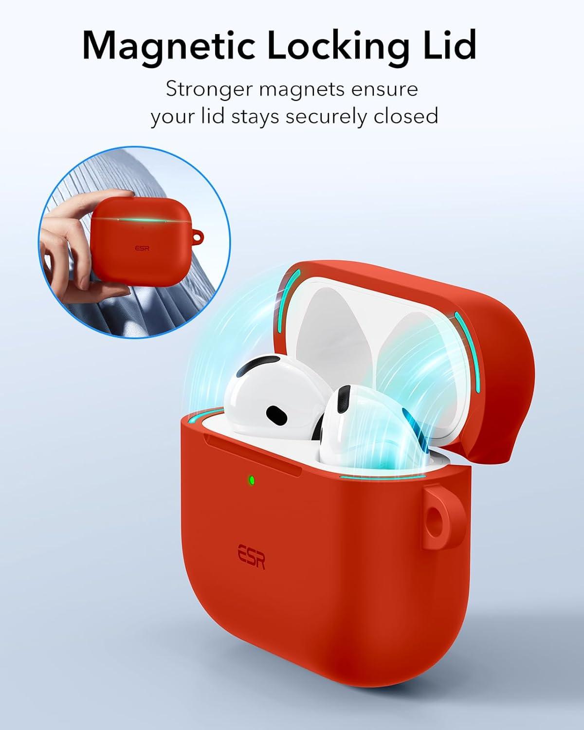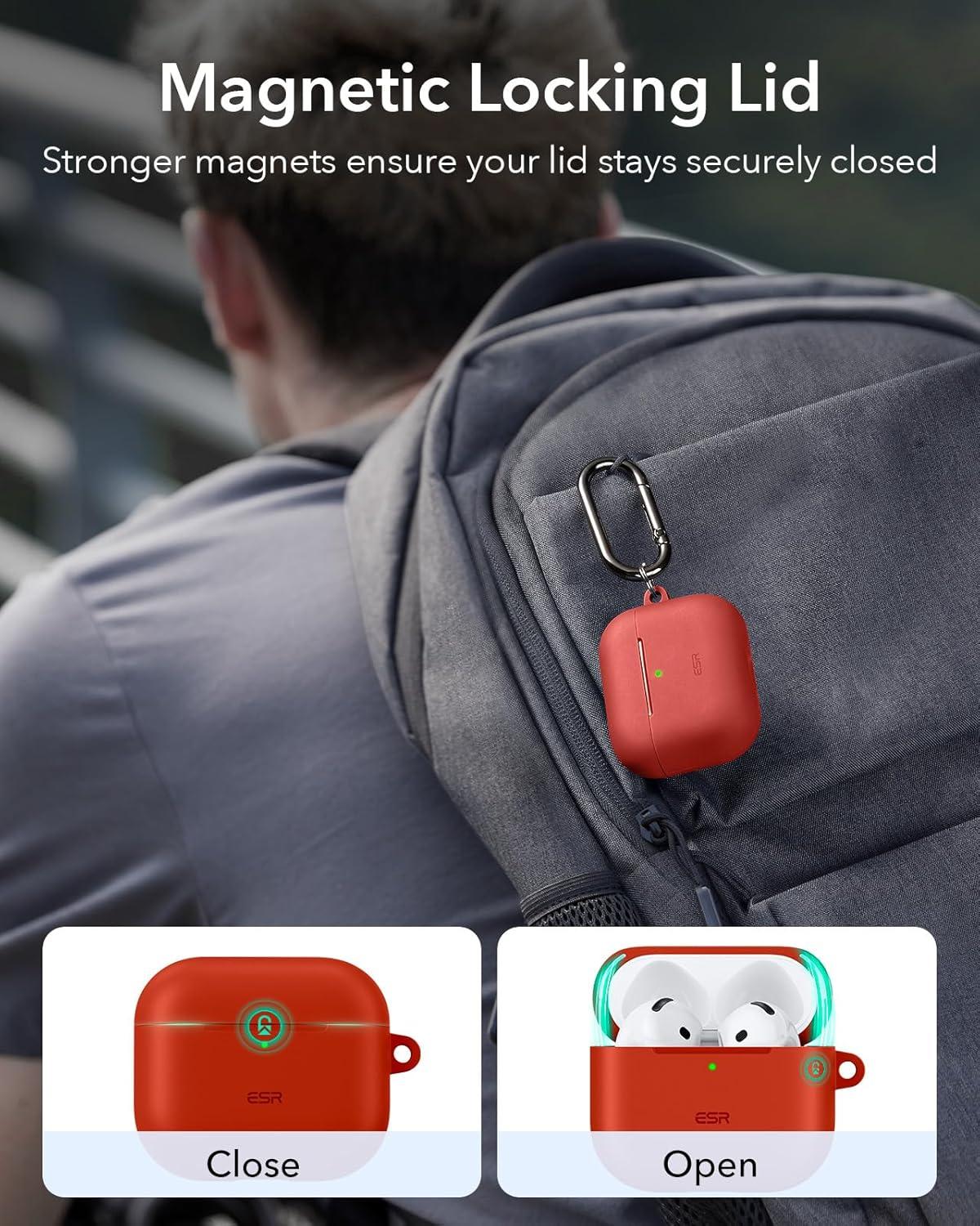 ESR for AirPods 4 Case (HaloLock), Compatible with AirPods 4th Generation Case (2024) (USB-C), Compatible with MagSafe, Full Drop Protection Cover with Carabiner, Magnetic Lid Lock, Black(Red)