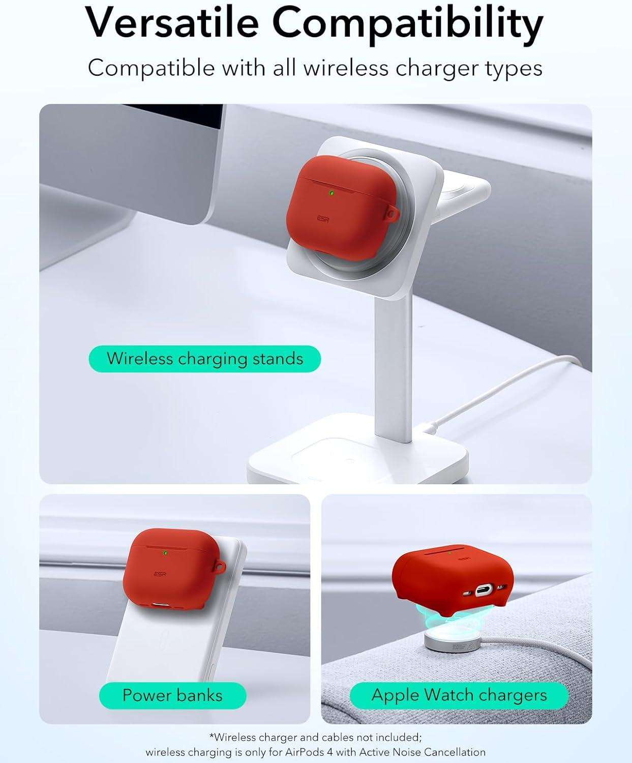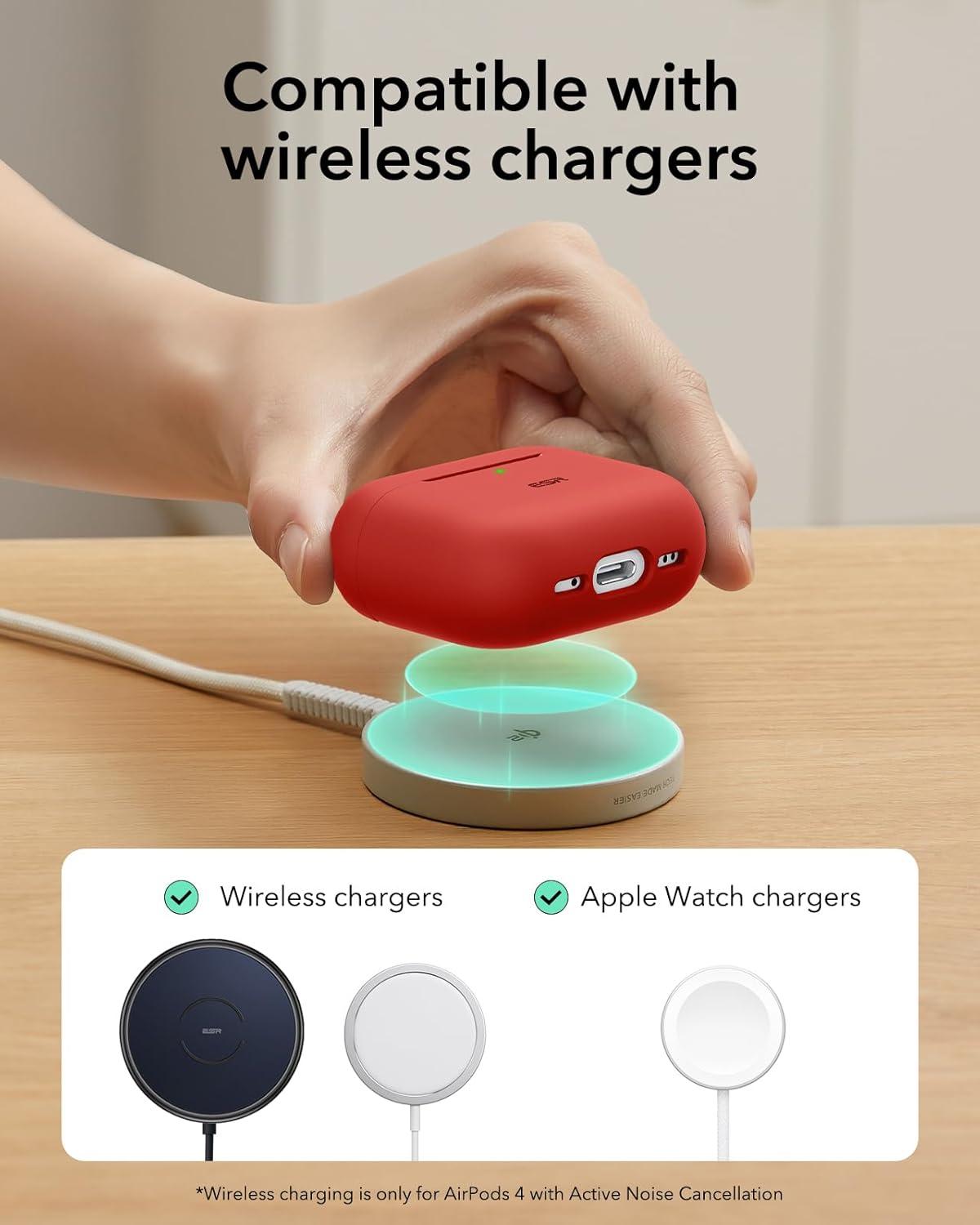 MagSafe Ready: strong magnets in the back of the case ensure a secure lock on MagSafe chargers for effortless magnetic alignment, letting you enjoy tap-and-go wireless charging for your AirPods; wireless charging is only for Airpods 4 with Active Noise Cancellation