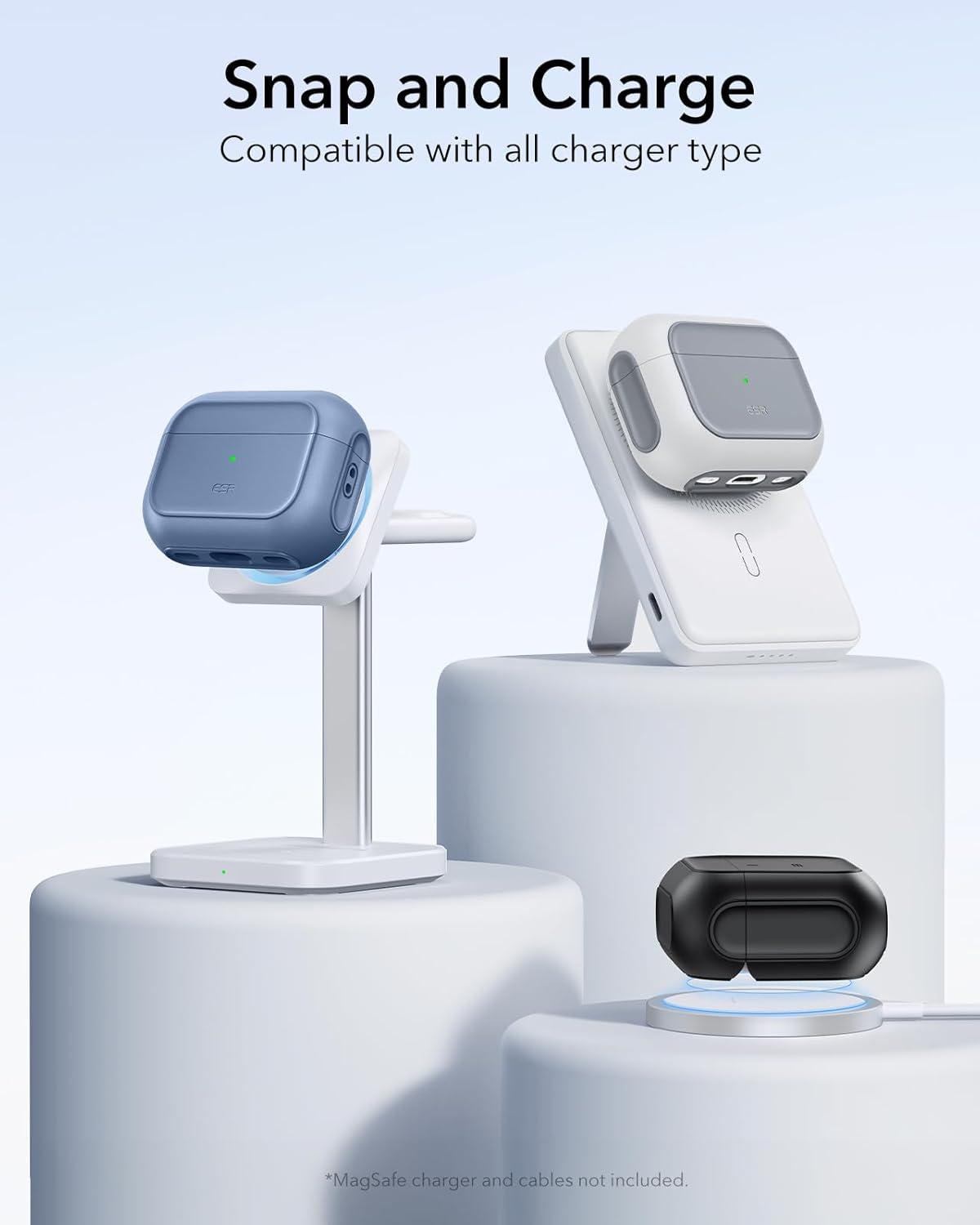 MagSafe Ready: strong magnets built into the back of the case ensure a secure lock on MagSafe chargers, letting you enjoy tap-and-go wireless charging for your earbuds