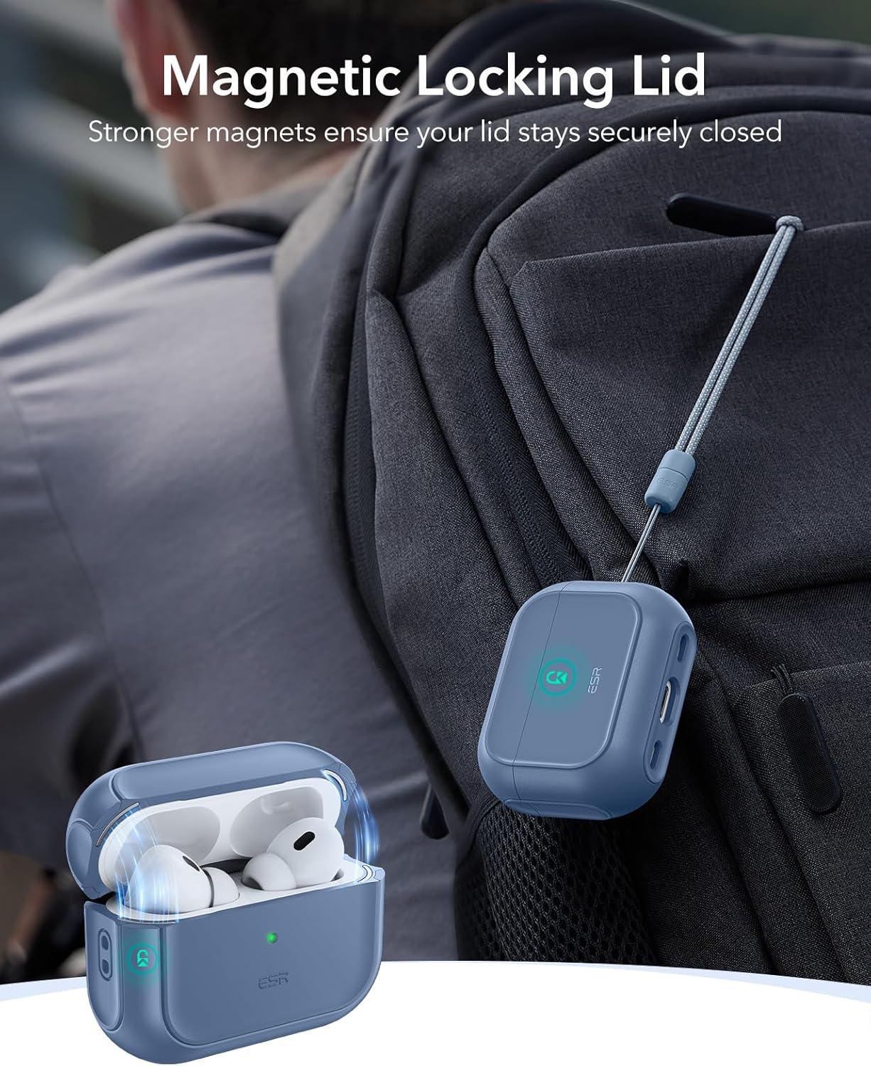 ESR for AirPods Pro 2 Case, Compatible with Airpods Pro Case 2nd / 1st Generation (2023/2022/2019), Compatible with MagSafe, Full Drop Protection Cover with Lanyard, Black | 2023, 2022, 2019, with Lanyard(A-Dark Blue)