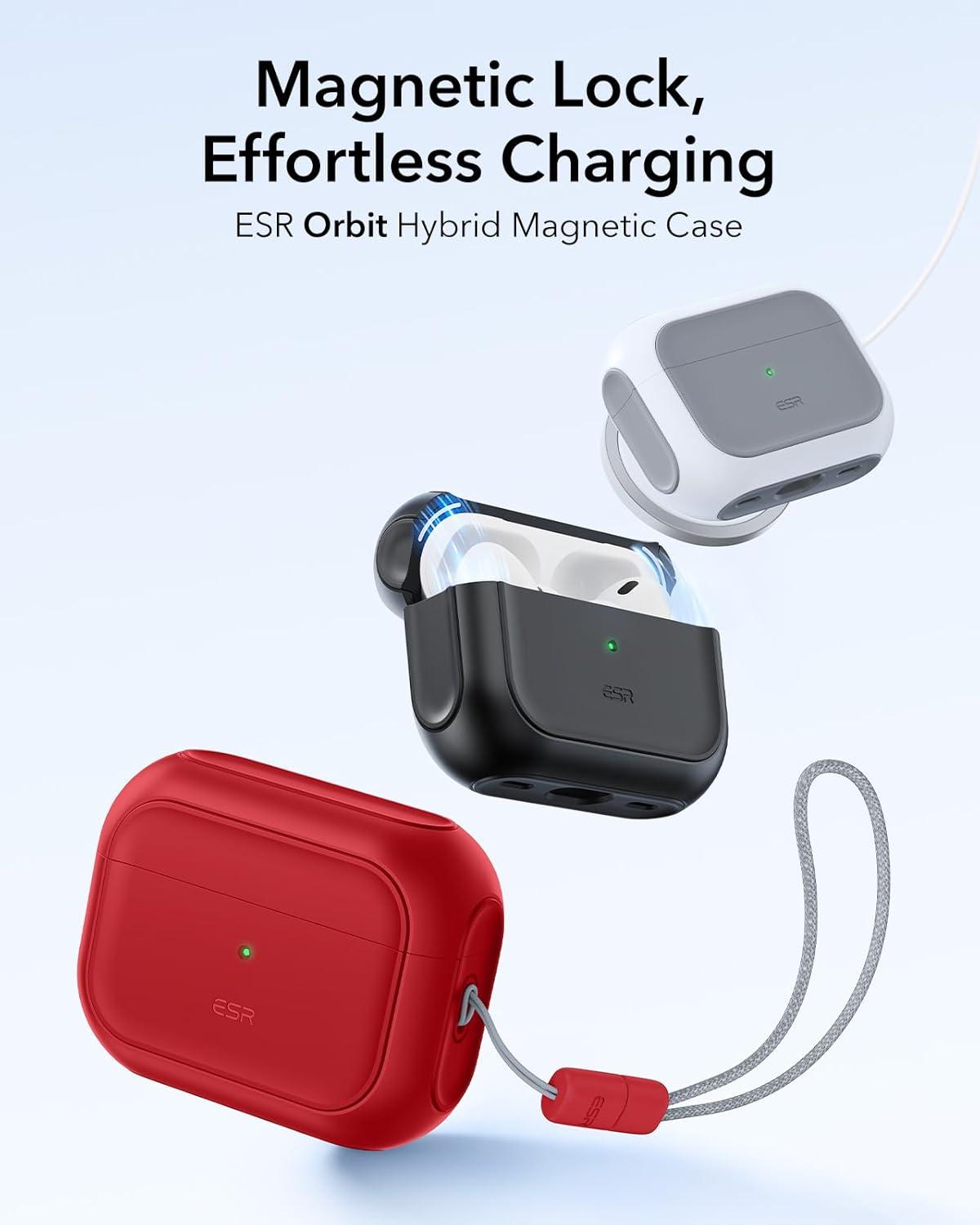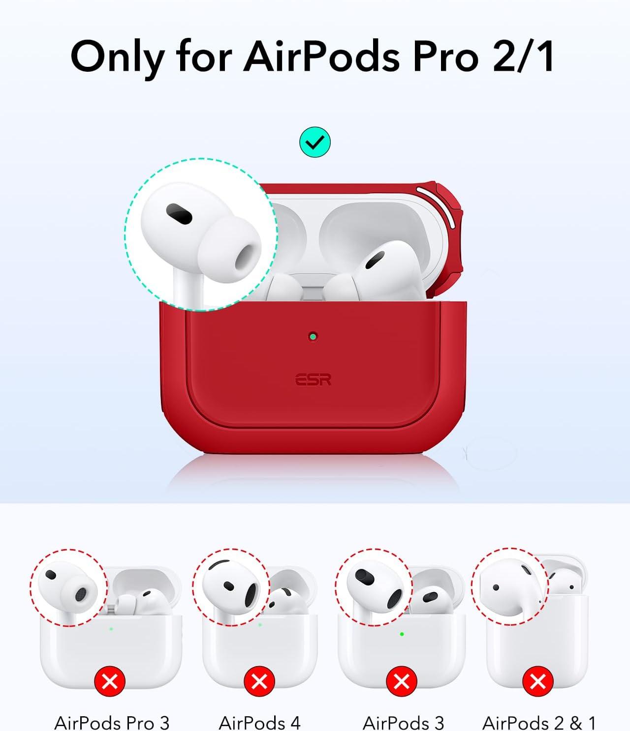 ESR for AirPods Pro 2 Case, Compatible with Airpods Pro Case 2nd / 1st Generation (2023/2022/2019), Compatible with MagSafe, Full Drop Protection Cover with Lanyard, Black | 2023, 2022, 2019, with Lanyard(A-Red)