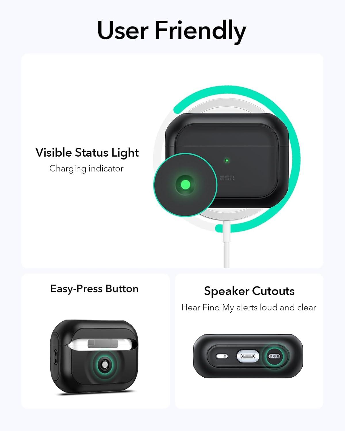 ESR for AirPods Pro 2 Case, Compatible with Airpods Pro Case 2nd / 1st Generation (2023/2022/2019), Compatible with MagSafe, Full Drop Protection Cover with Lanyard, Black | 2023, 2022, 2019, with Lanyard(A-Black)