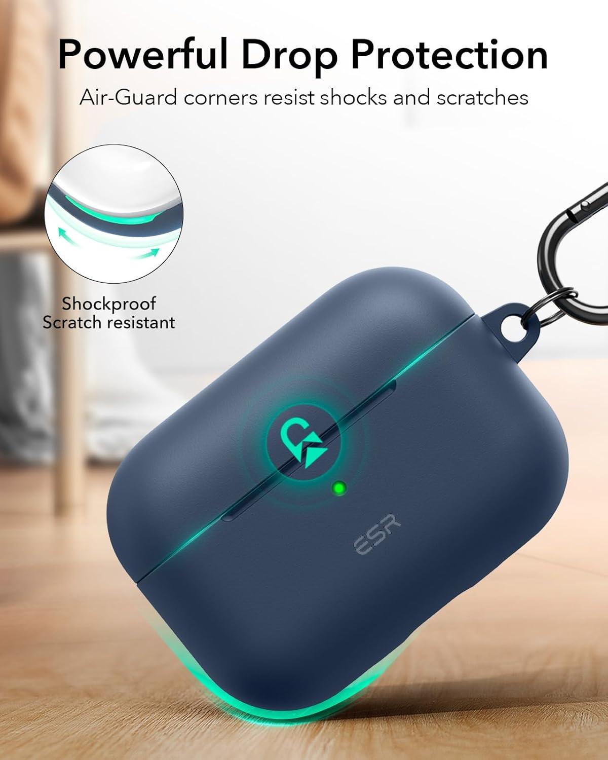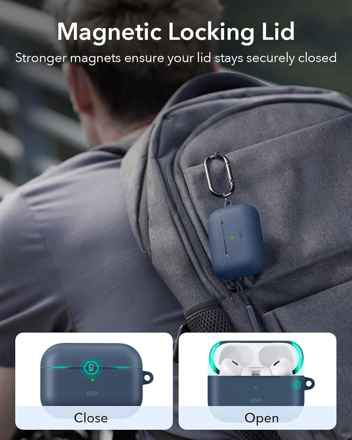 ESR for AirPods Pro 2 Case (USB-C/Lightning Cable), Compatible with Airpods Pro 2nd Generation Case (2023/2022/2019), Magnetic Lid, Full Drop Protection Cover with Carabiner, Cloud Series, Blue(Blue)