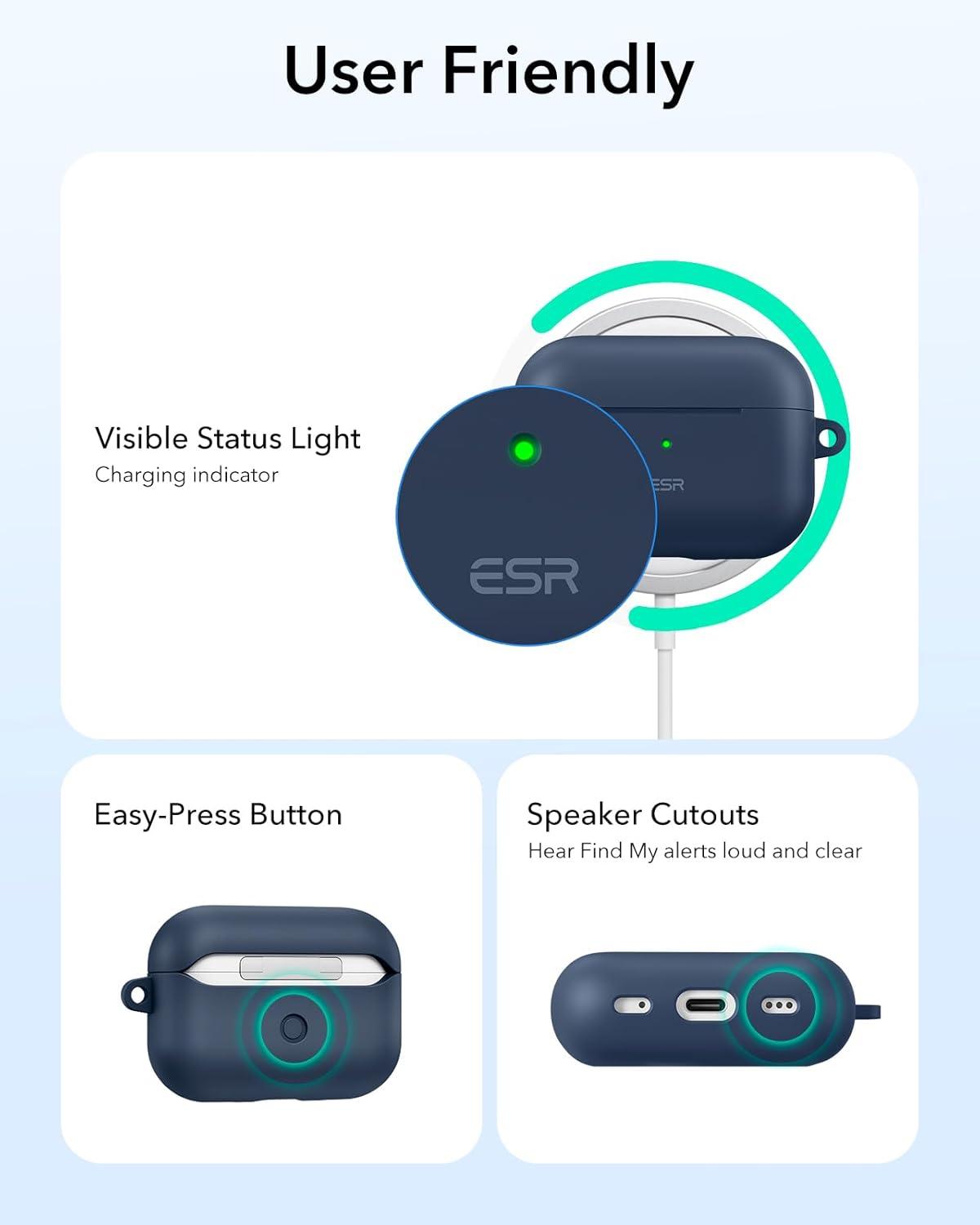 Be the first to review “ESR for AirPods Pro 2 Case (USB-C/Lightning Cable), Compatible with Airpods Pro 2nd Generation Case (2023/2022/2019), Magnetic Lid, Full Drop Protection Cover with Carabiner, Cloud Series, Blue(Blue)”