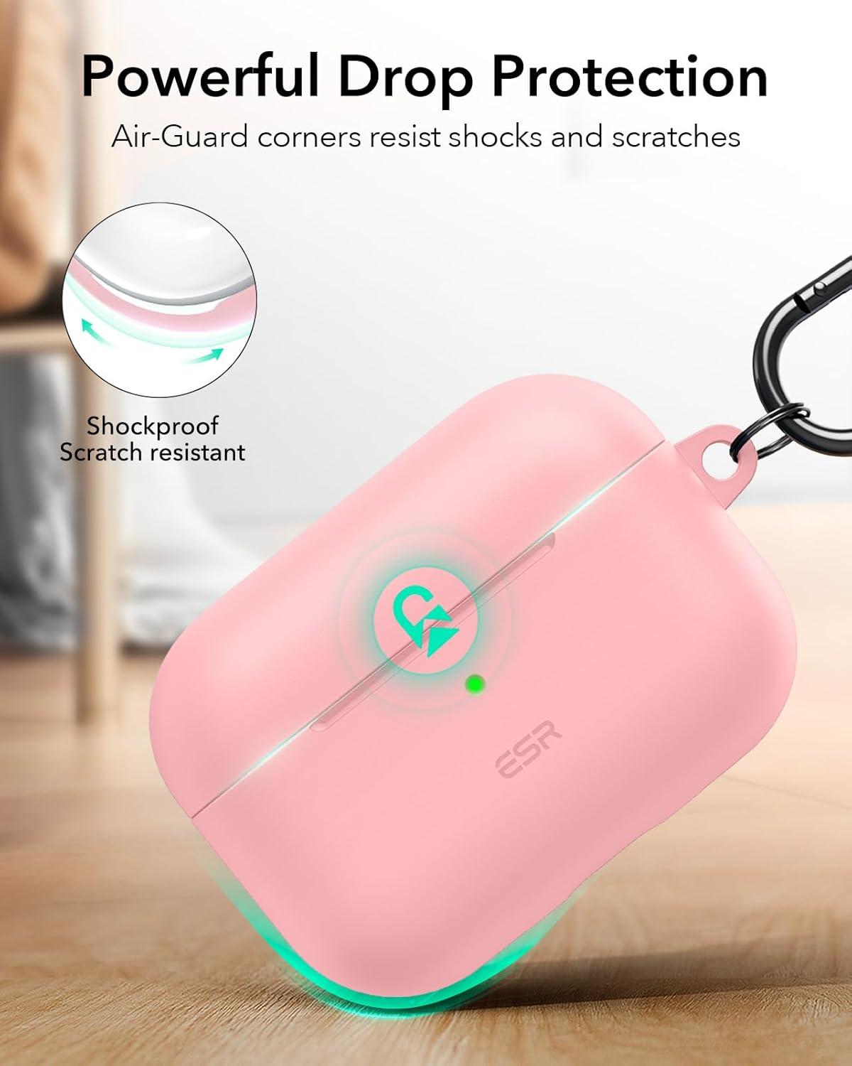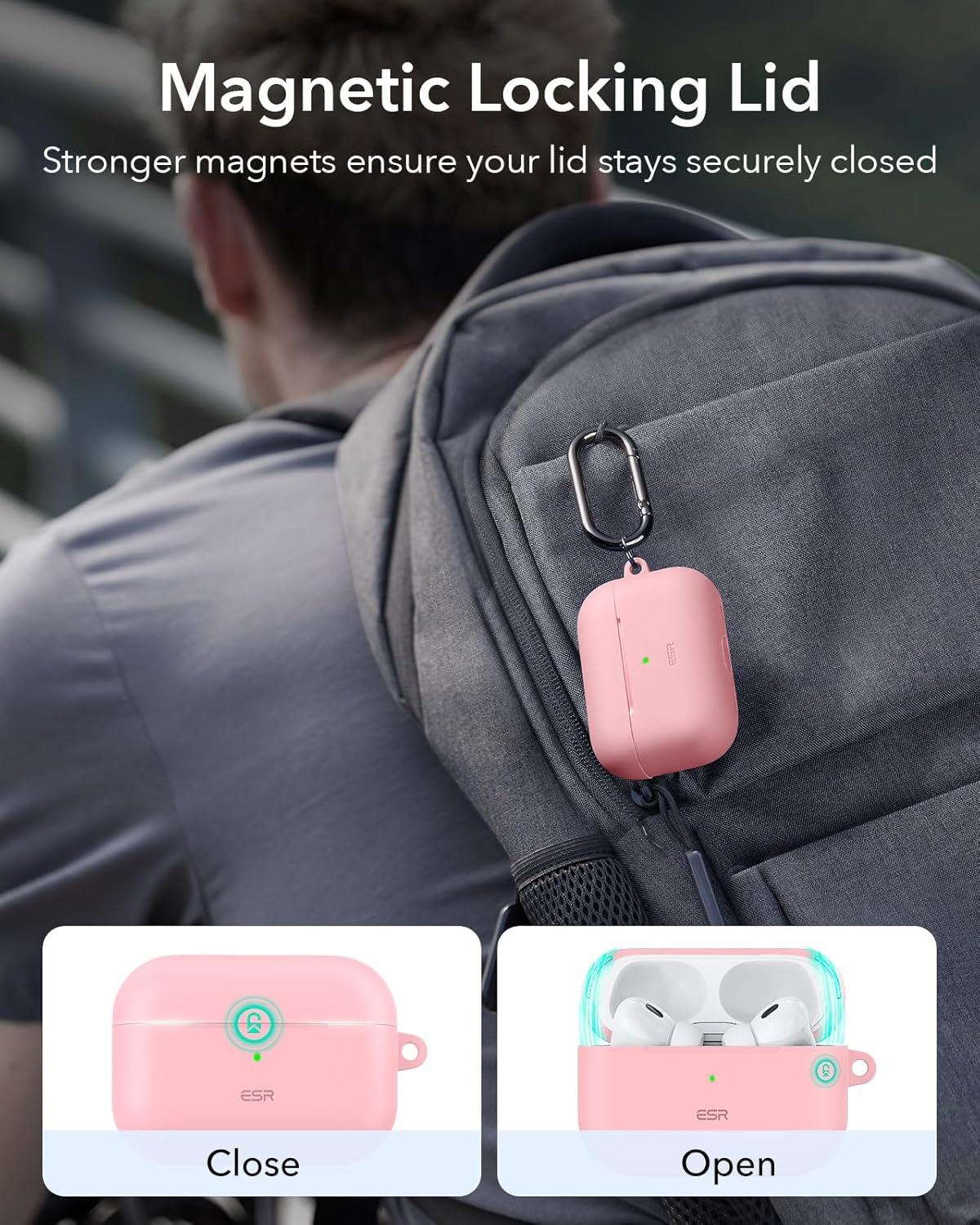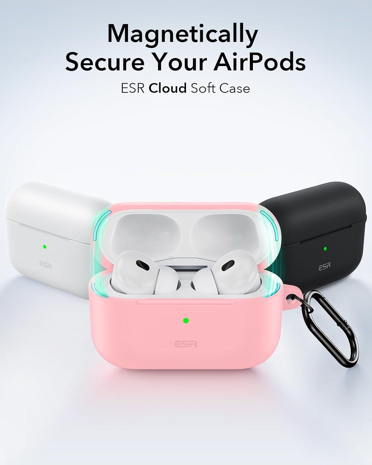 ESR for AirPods Pro 2 Case (USB-C/Lightning Cable), Compatible with Airpods Pro 2nd Generation Case (2023/2022/2019), Magnetic Lid, Full Drop Protection Cover with Carabiner, Cloud Series, Blue(Pink)