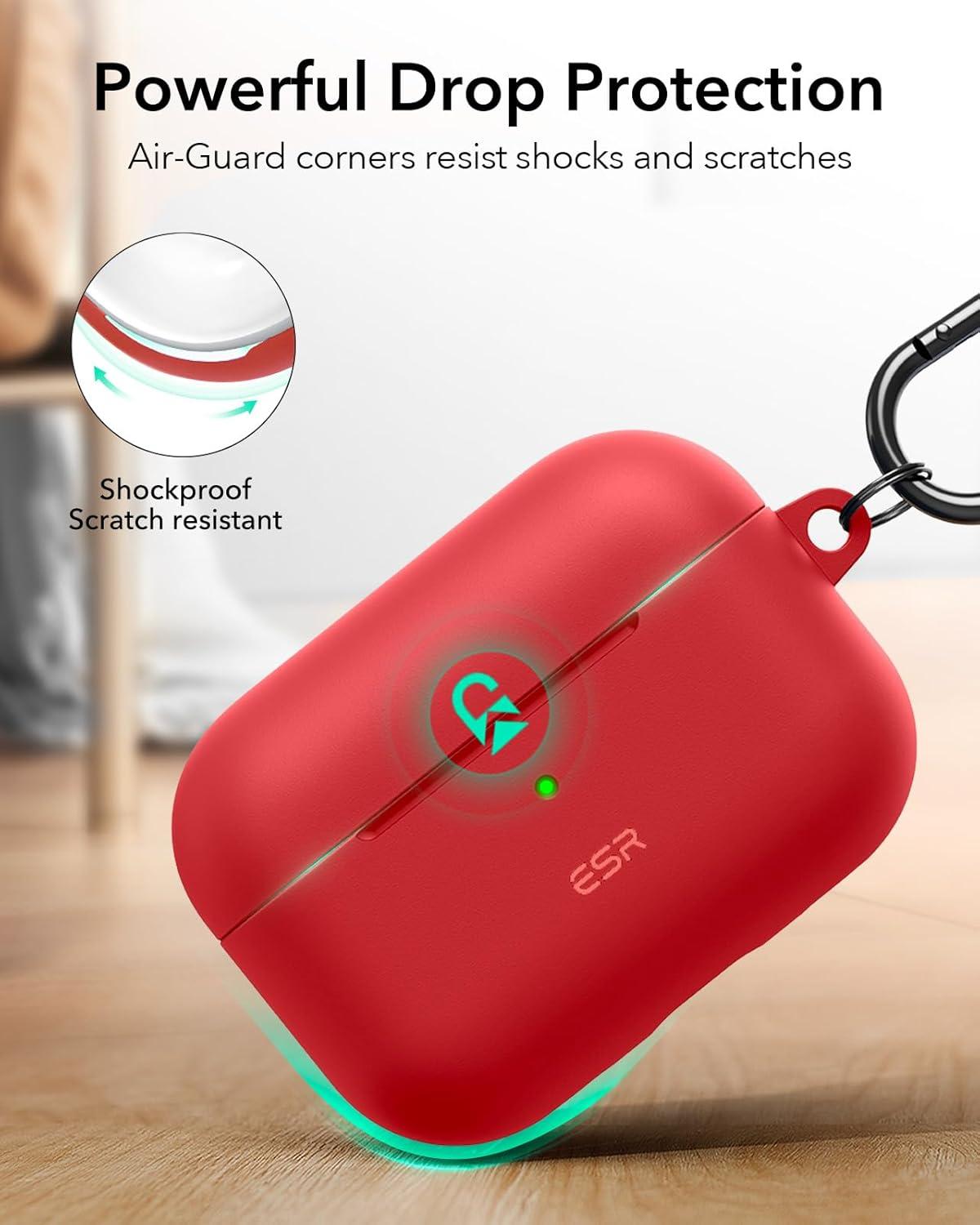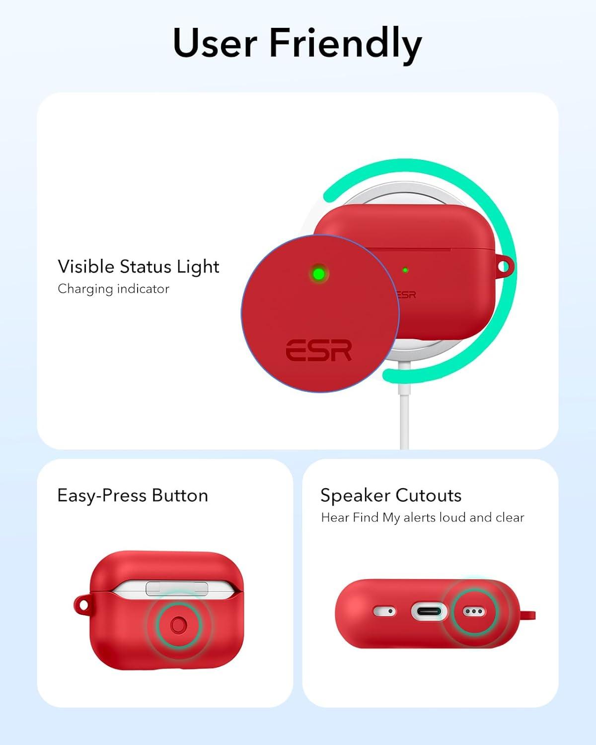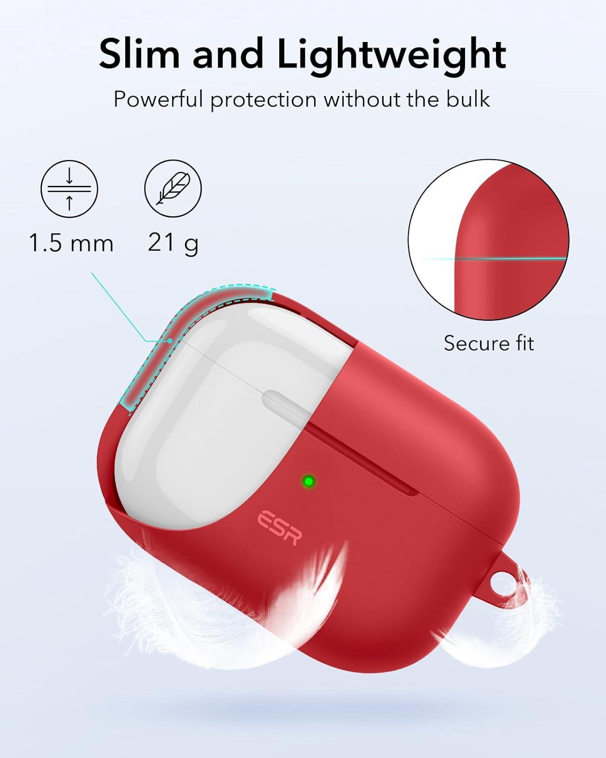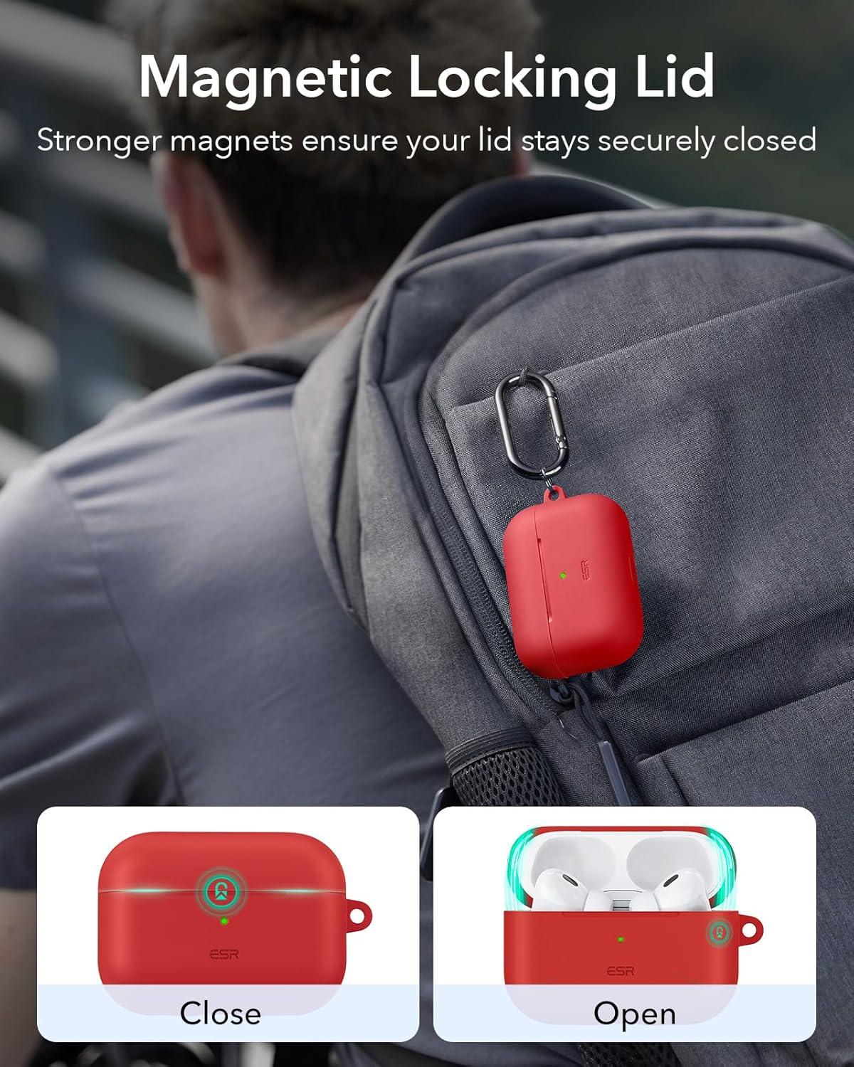 ESR for AirPods Pro 2 Case (USB-C/Lightning Cable), Compatible with Airpods Pro 2nd Generation Case (2023/2022/2019), Magnetic Lid, Full Drop Protection Cover with Carabiner, Cloud Series, Blue(Red)