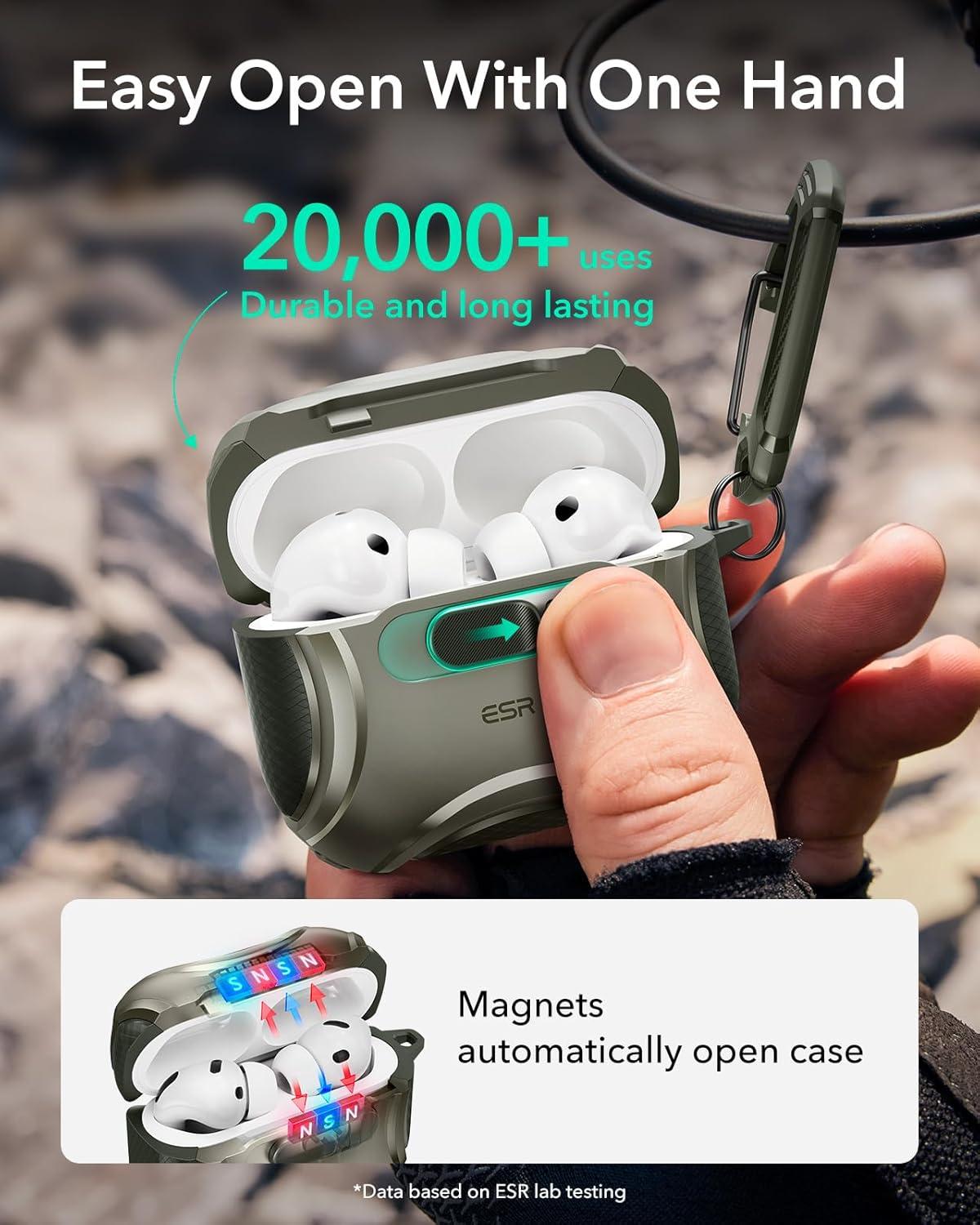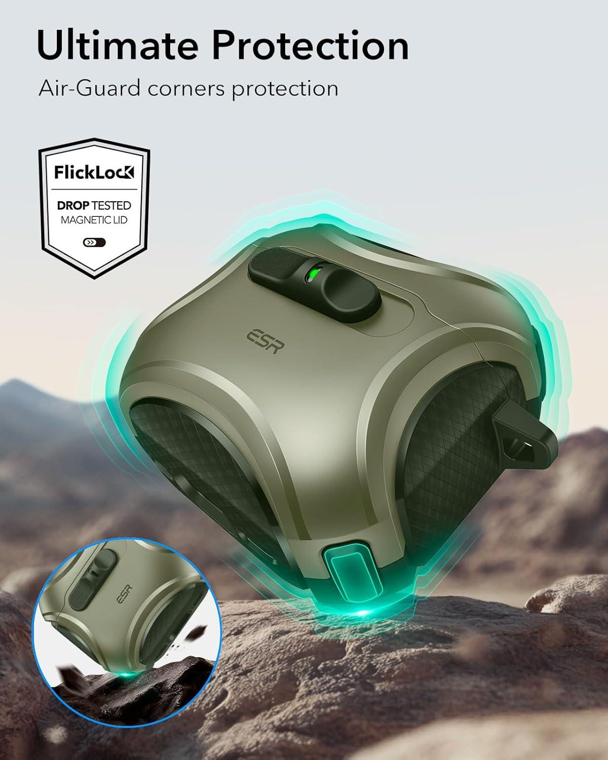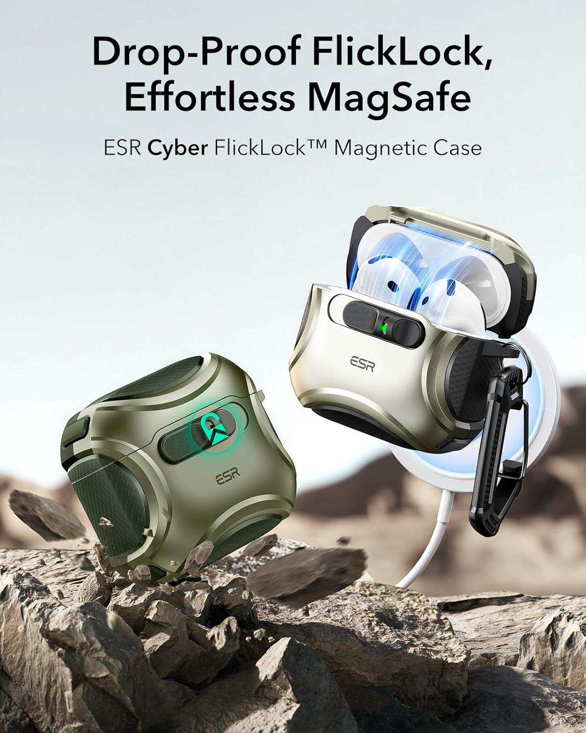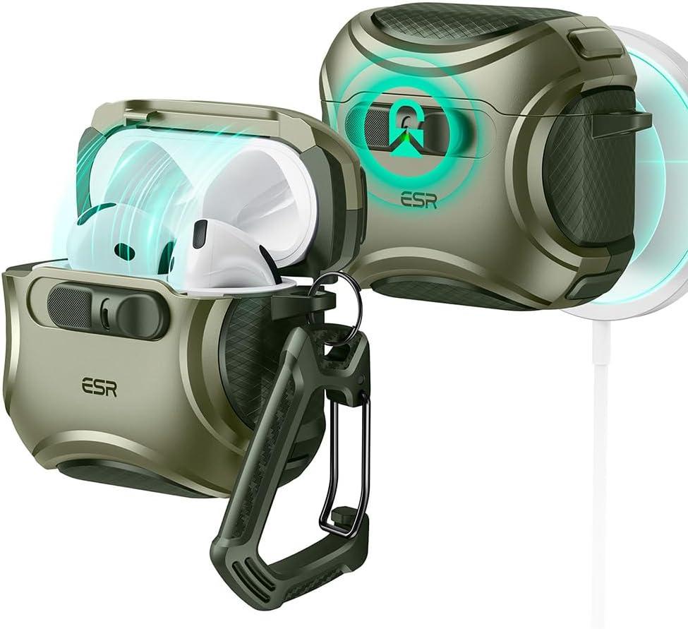 ESR for AirPods Pro 3 Case (2025), Compatible with Airpods Pro 3rd Generation Case (USB-C Cable), Effortless MagSafe, Drop-Proof Lock, Easy Open, Cyber Series, Black(Army Green)
