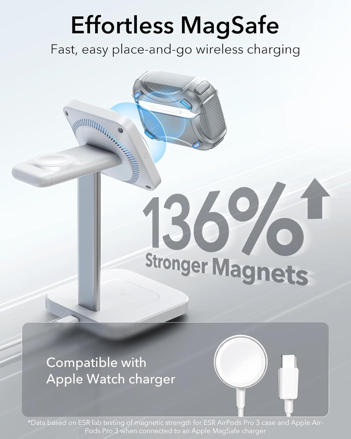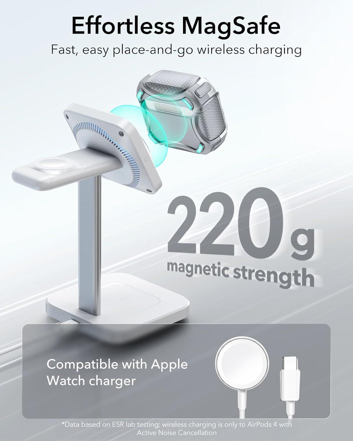MagSafe Ready: strong magnets with a 260 g holding force built into the back of the case ensure a secure lock on MagSafe chargers, letting you enjoy tap-and-go wireless charging for your earbuds