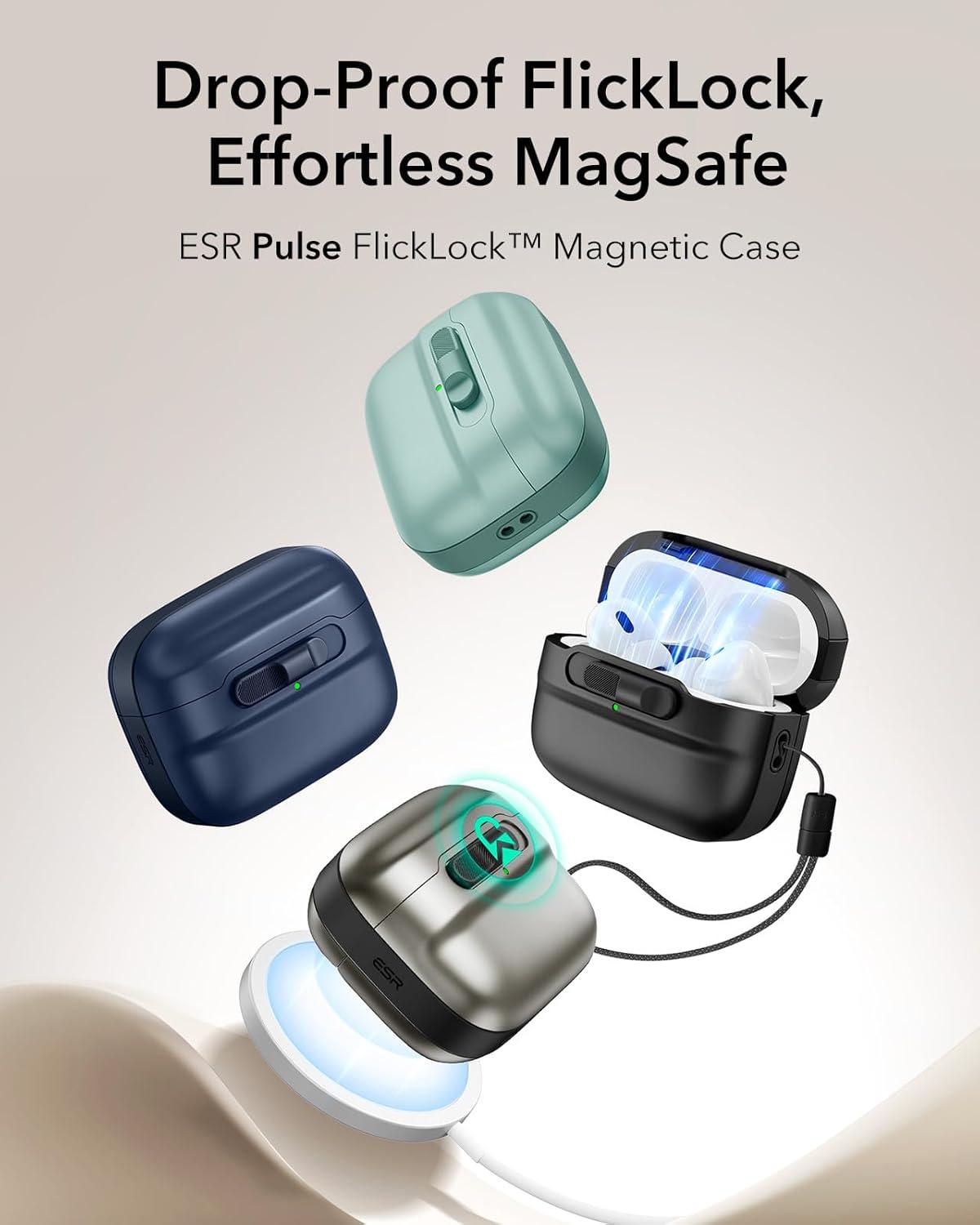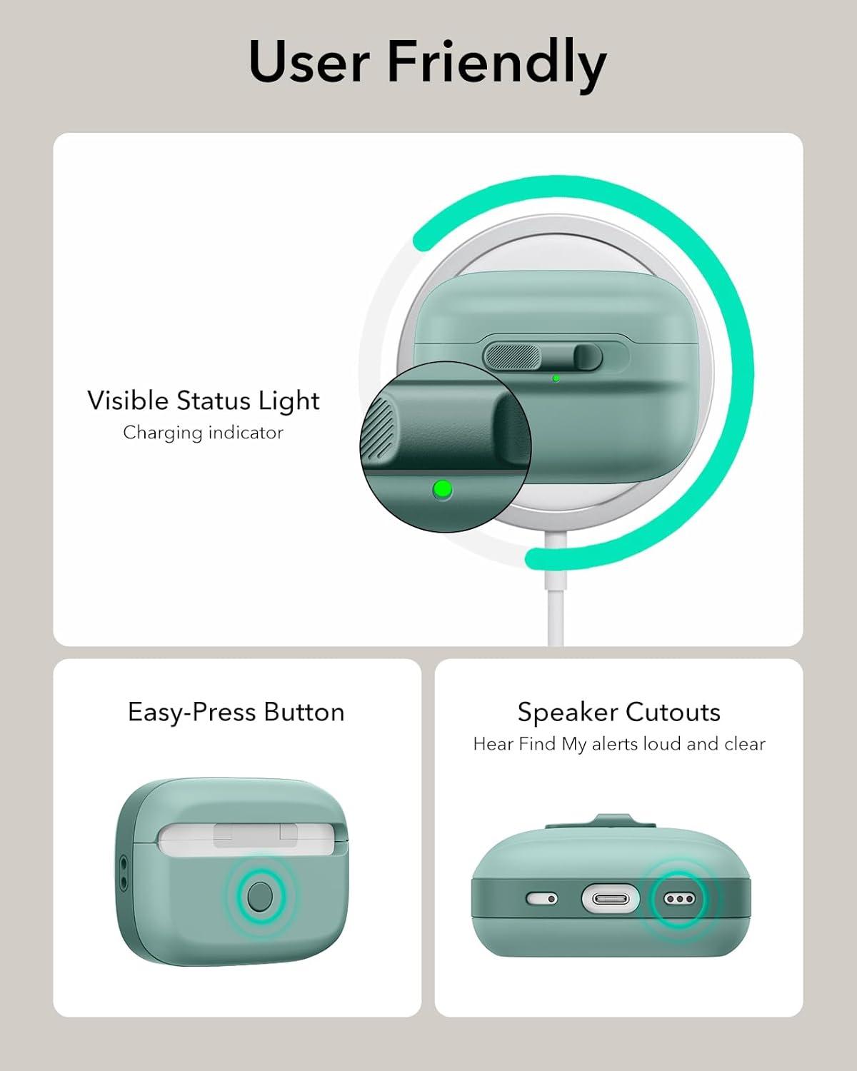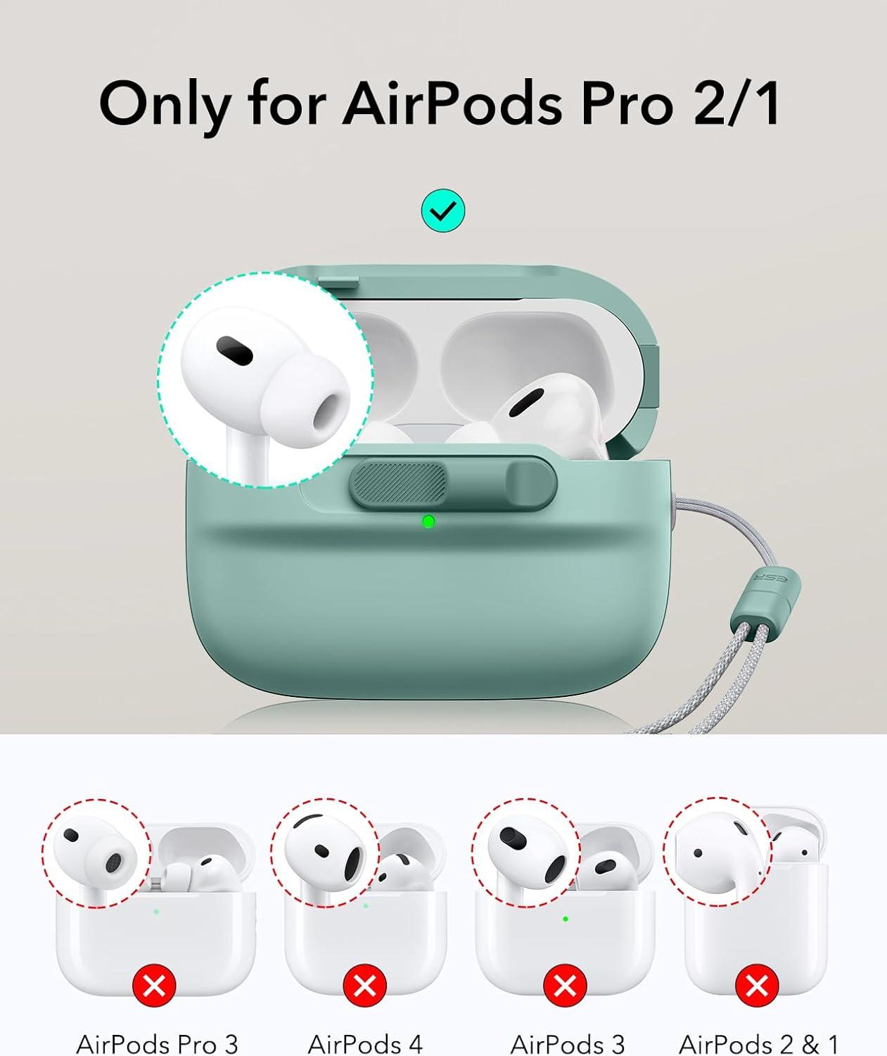 ESR for AirPods Pro Case (2023/2022/2019, 2nd/1st Gen), Compatible with Airpods Pro 2 (USB-C/Lightning Cable), MagSafe Ready, Magnetic Lid Lock, Full Drop Protection Cover with Lanyard, Black(Green)