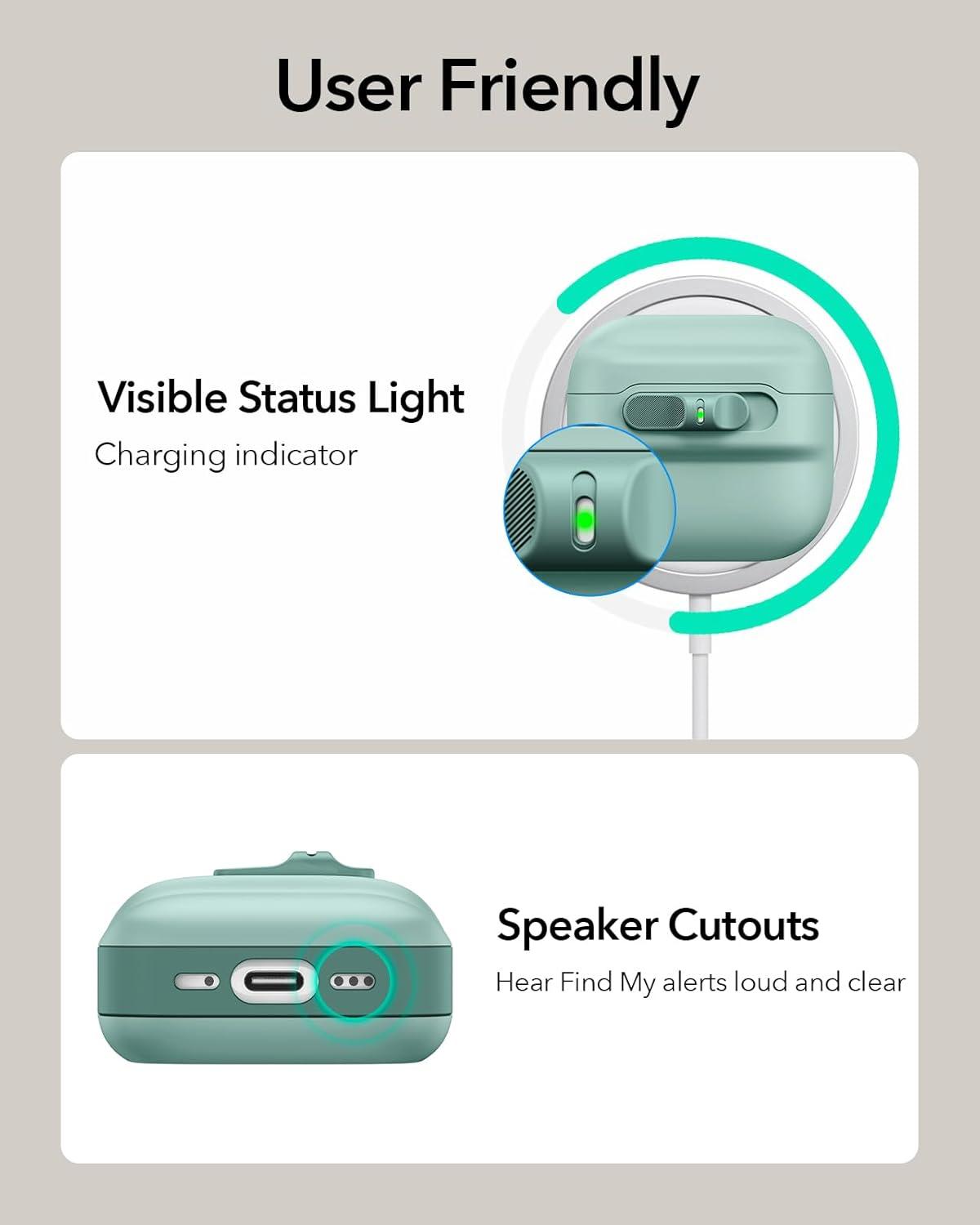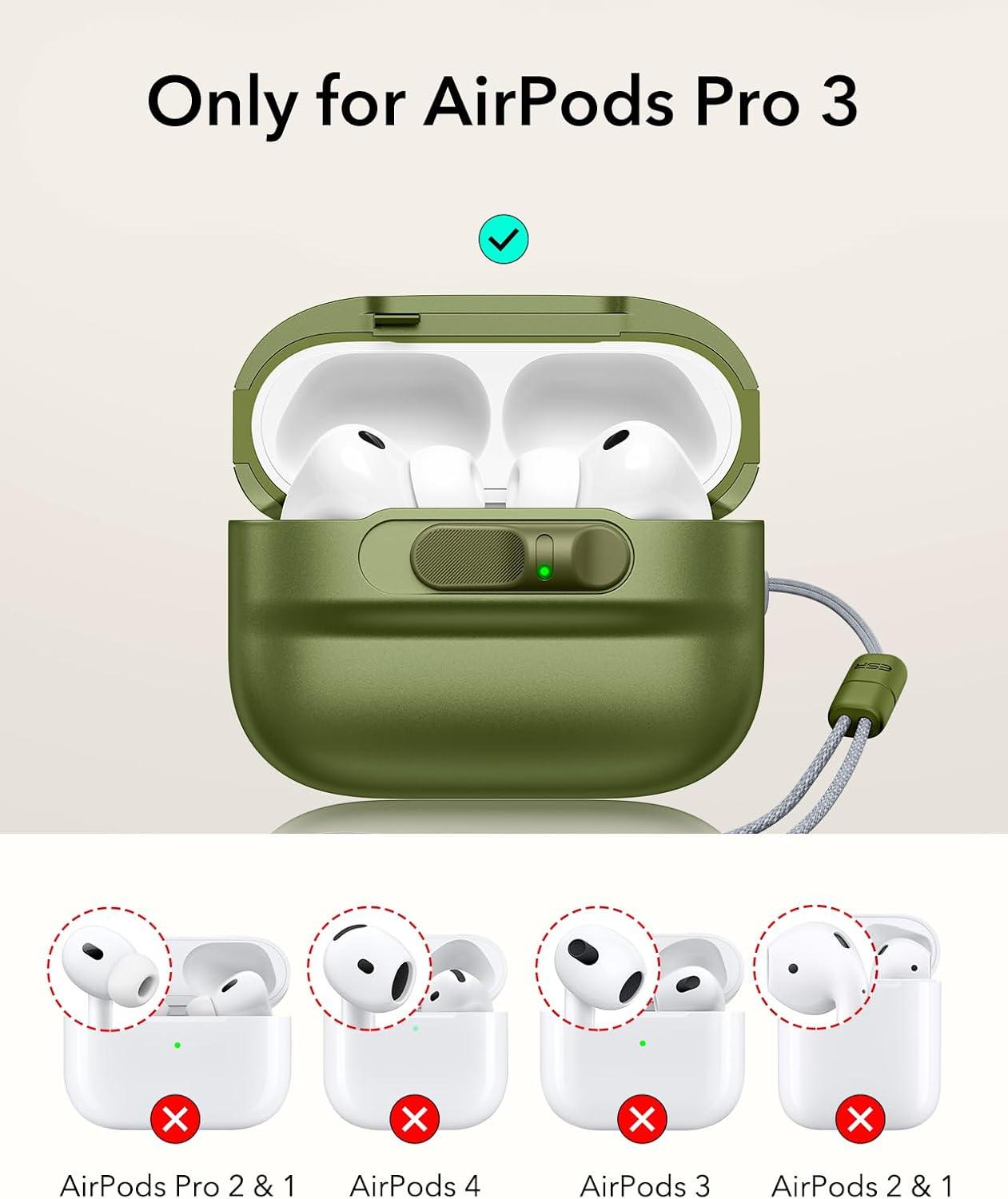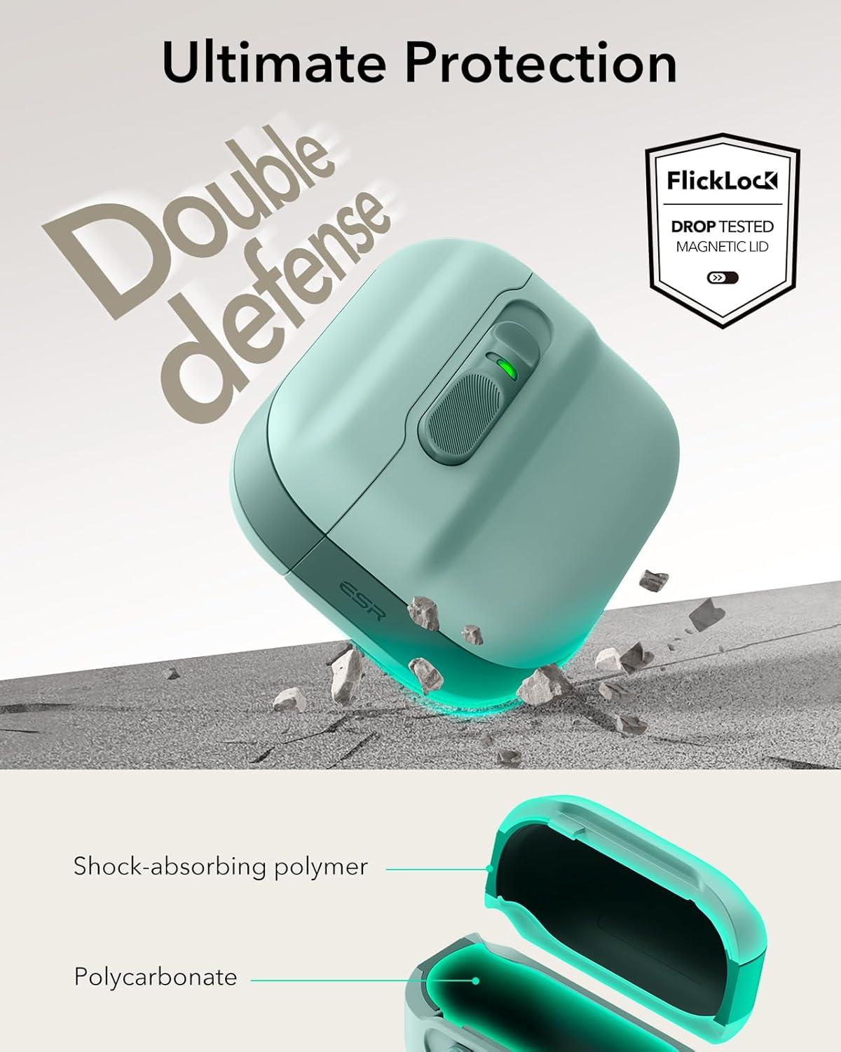 ESR for AirPods Pro Case (2023/2022/2019, 2nd/1st Gen), Compatible with Airpods Pro 2 (USB-C/Lightning Cable), MagSafe Ready, Magnetic Lid Lock, Full Drop Protection Cover with Lanyard, Black(Green)