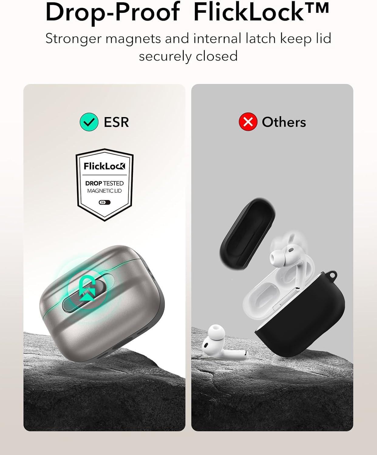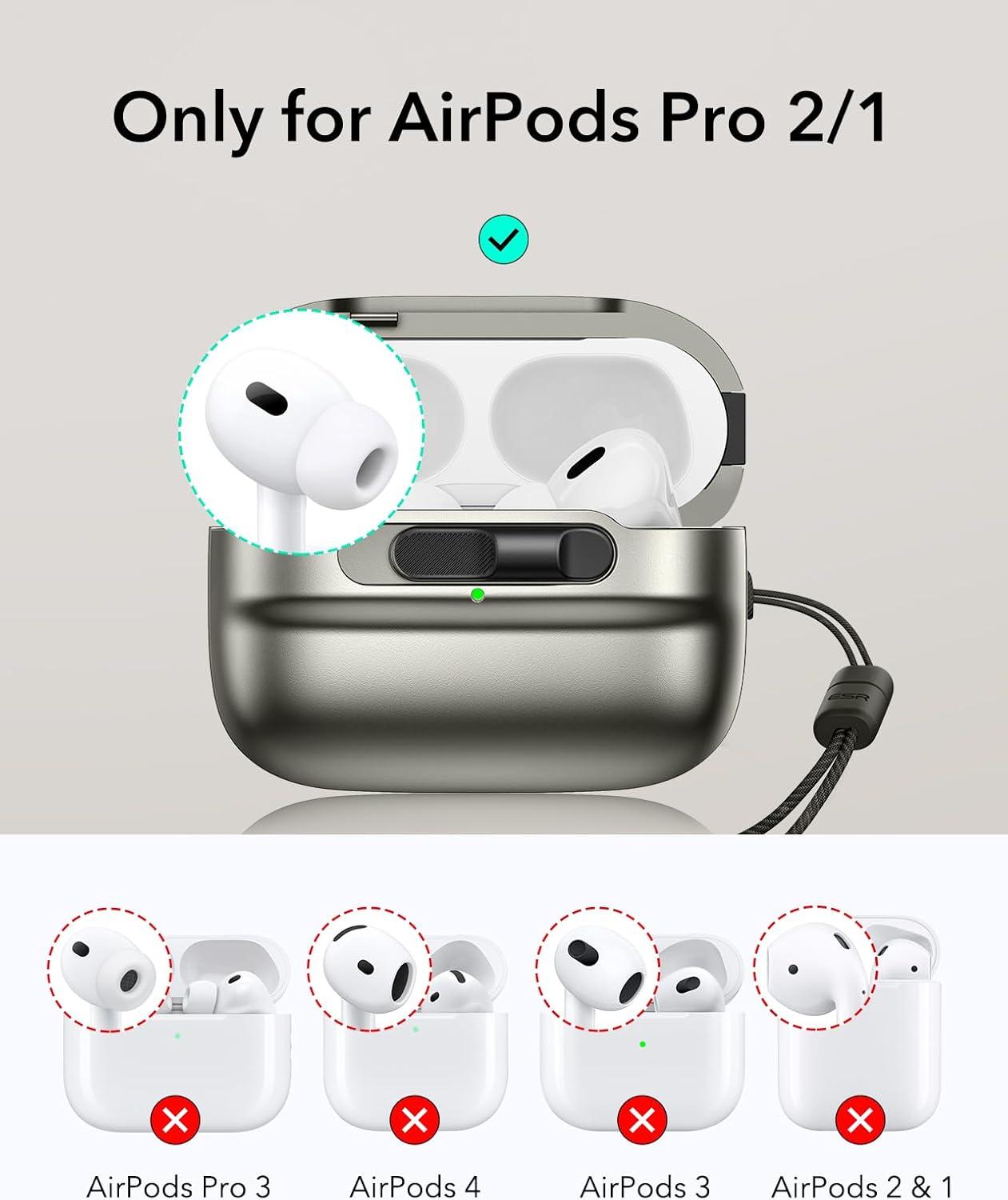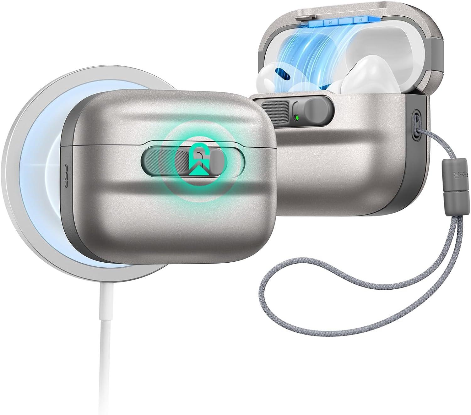 ESR for AirPods Pro Case (2023/2022/2019, 2nd/1st Gen), Compatible with Airpods Pro 2 (USB-C/Lightning Cable), MagSafe Ready, Magnetic Lid Lock, Full Drop Protection Cover with Lanyard, Black(Titanium)
