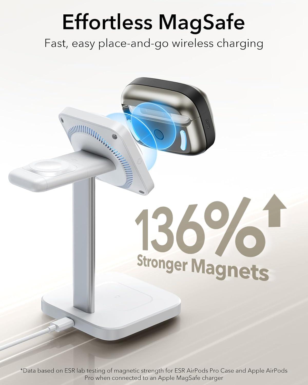MagSafe Ready: strong magnets in the back of the case ensure a secure lock on MagSafe chargers, letting you enjoy tap-and-go wireless charging for your earbuds