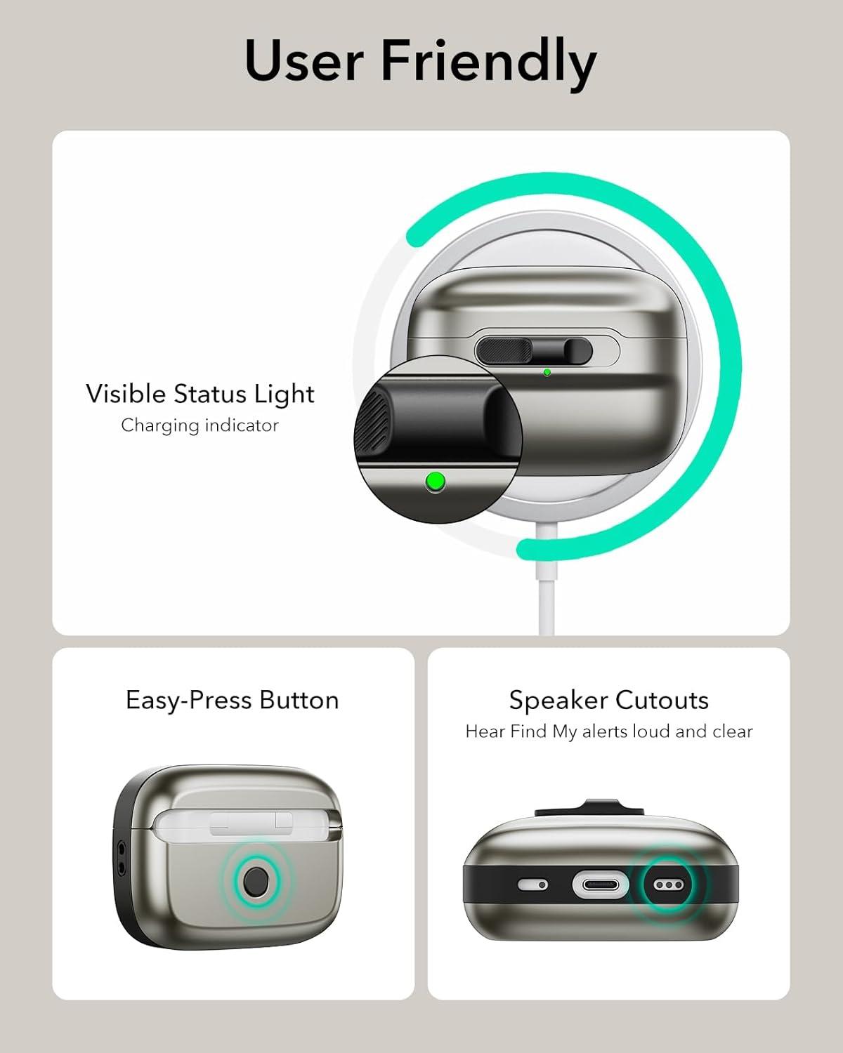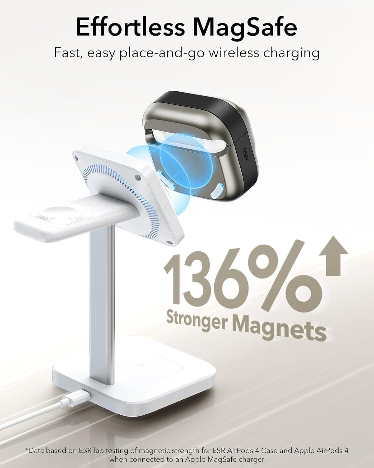 MagSafe Ready: strong magnets built into the back of the case ensure a secure lock on all MagSafe, giving you tap-and-go wireless charging for your AirPods