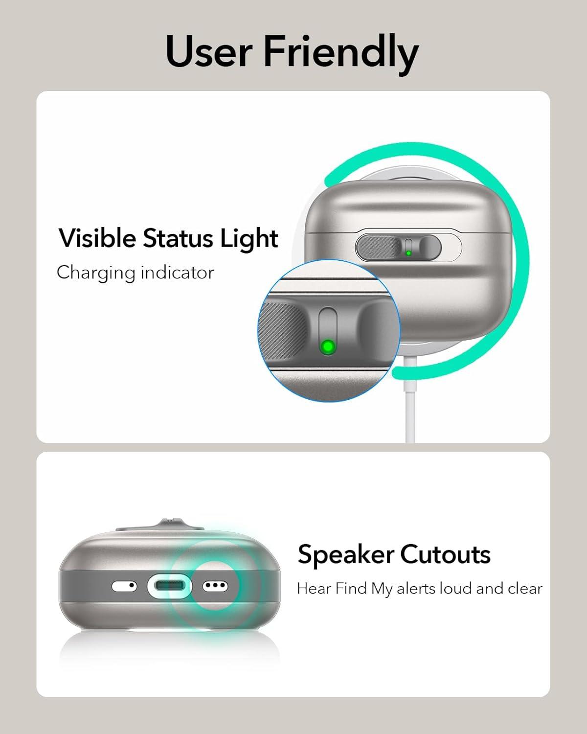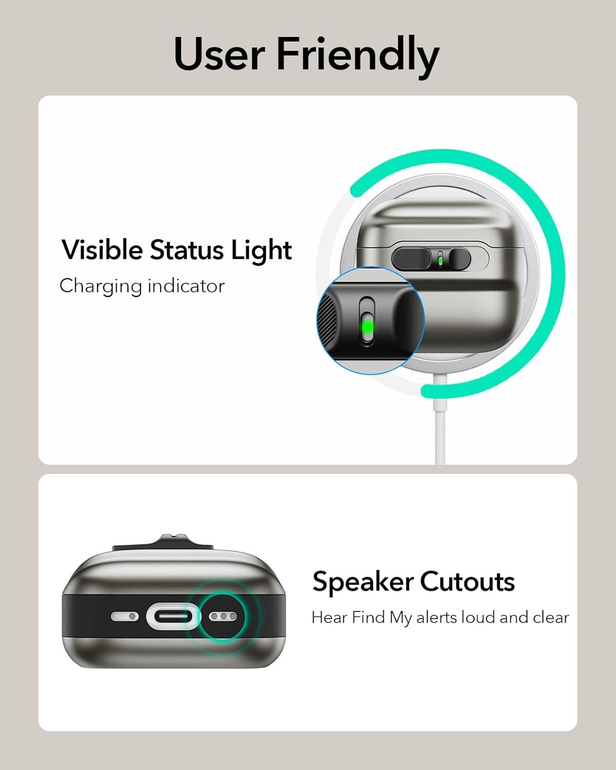 Speaker Cutouts: specially positioned apertures on the base let you hear the Find My, low battery, and pairing sounds loud and clear