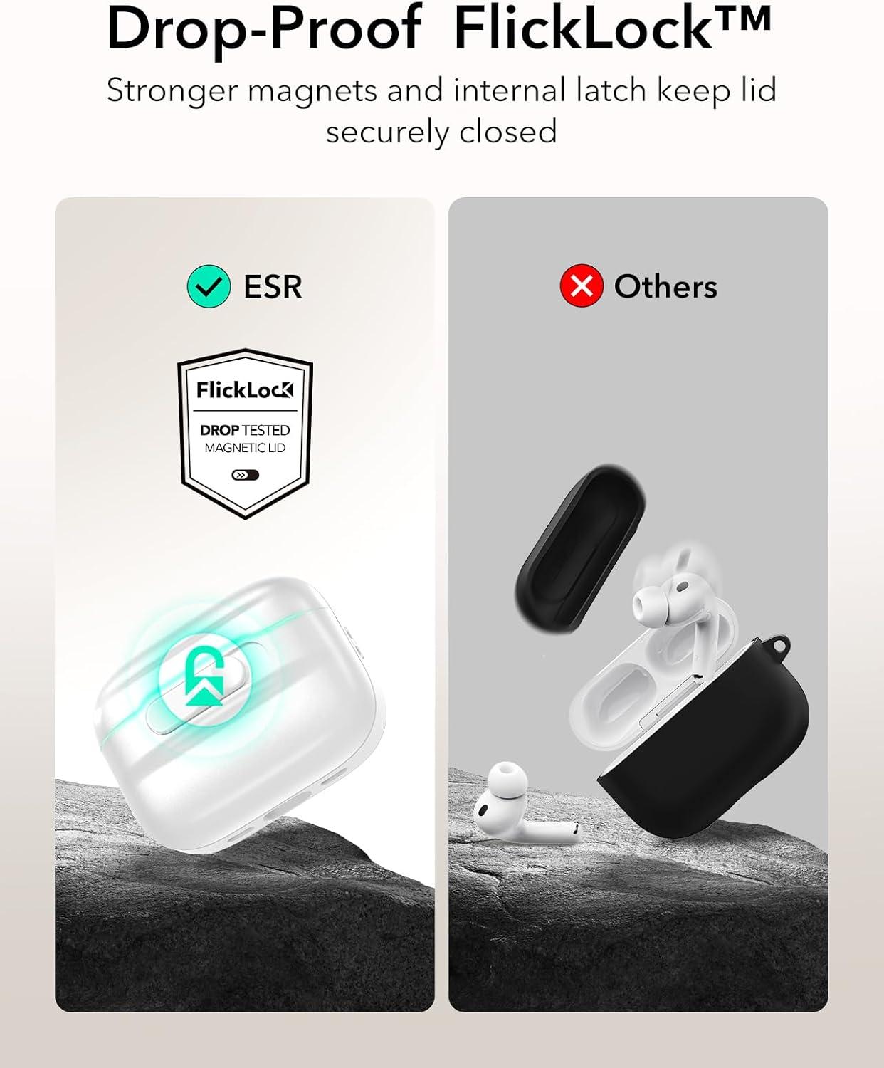 ESR for AirPods Pro Case (2023/2022/2019, 2nd/1st Gen), Compatible with Airpods Pro 2nd Generation Case (USB-C/Lightning Cable), Compatible with MagSafe, Full Drop Protection, Cloud Series, Black(White)