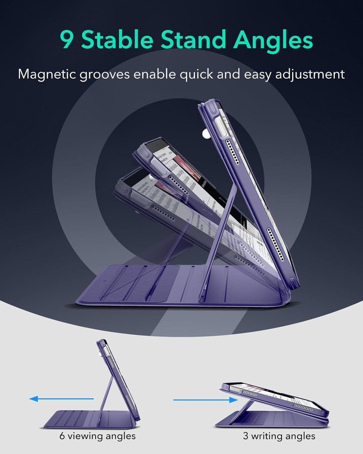 ESR for iPad A16 Case, iPad 11th/10th Generation Case (2025/2022), Removable Magnetic Cover, Adjustable Portrait/Landscape Stand with Raised Screen View, 9 Standing Angles, Blue(Purple)