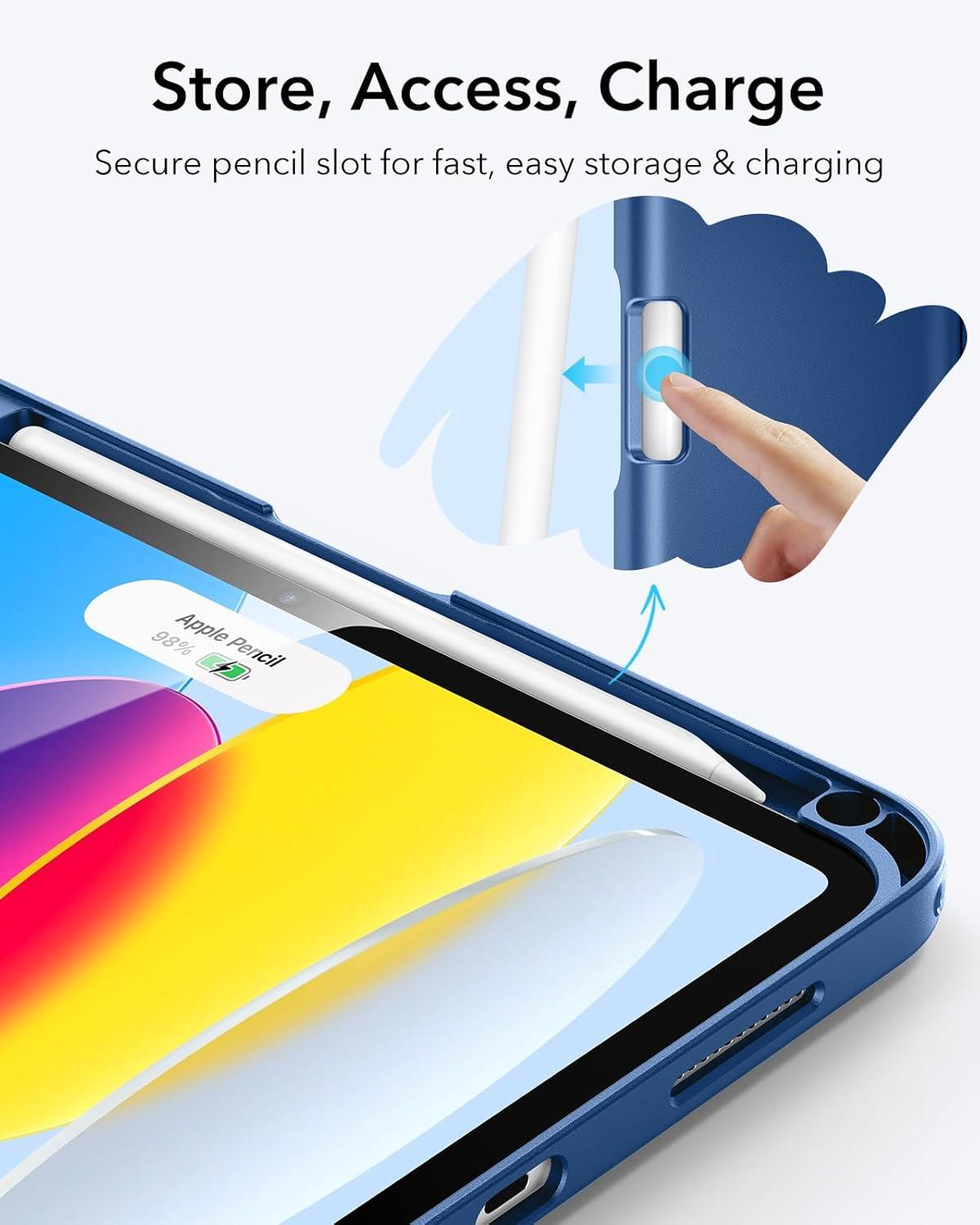 ESR for iPad A16 Case, iPad 11th/10th Generation Case (2025/2022), Vertical Stand Cover, Multi Stand Angles, Ultra-Stable Cover with Pencil Holder, Flip Series, Black | (2025/2022), Multi Stand Angles, Ultra-Stable Cover, with Pencil Holder, Black(Blue)