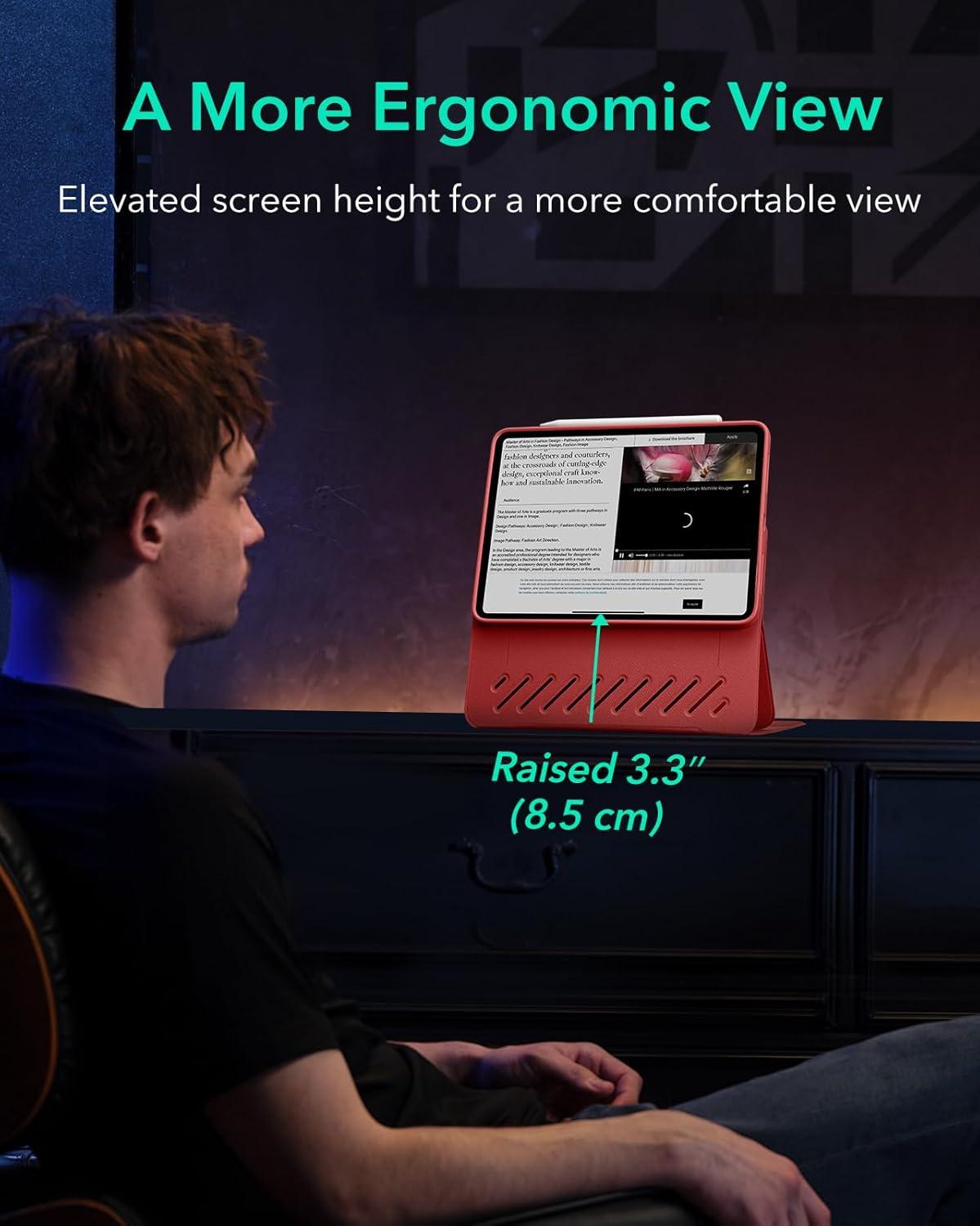 Raised Screen View: enjoy a raised view of your iPad Air closer to your natural eye line and sit upright in a more comfortable position during long periods of use