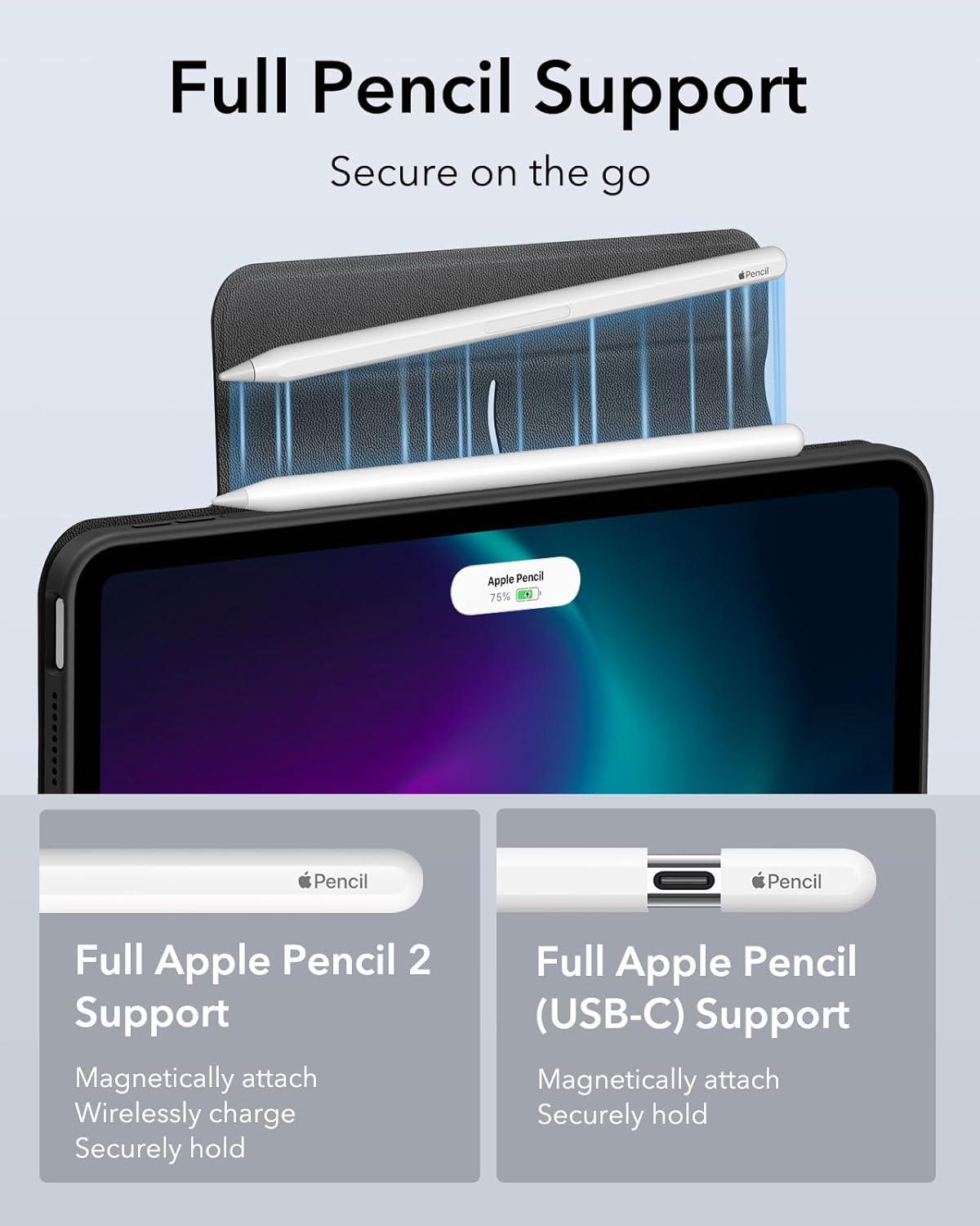 Supports Pencil Pro and Pencil (USB-C): this iPad Air case fully supports Pencil Pro with a recessed side groove for magnetic charging and a magnetic clasp to keep your Pencil secure