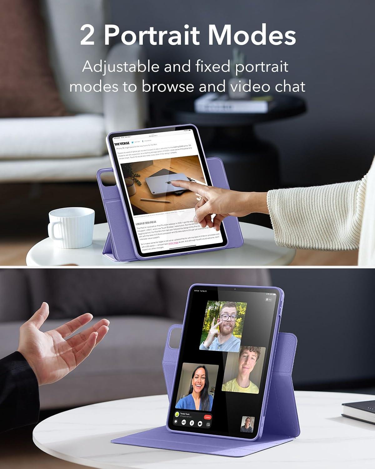 ESR for iPad Air 11 Inch Case M3/M2 (2025/2024), iPad Air 5th/4th Gen Case (2022/2020) 10.9 Inch with Pencil Holder, Removable Magnetic Cover, Vertical Stand, Rebound 360 Series, Green(Purple)