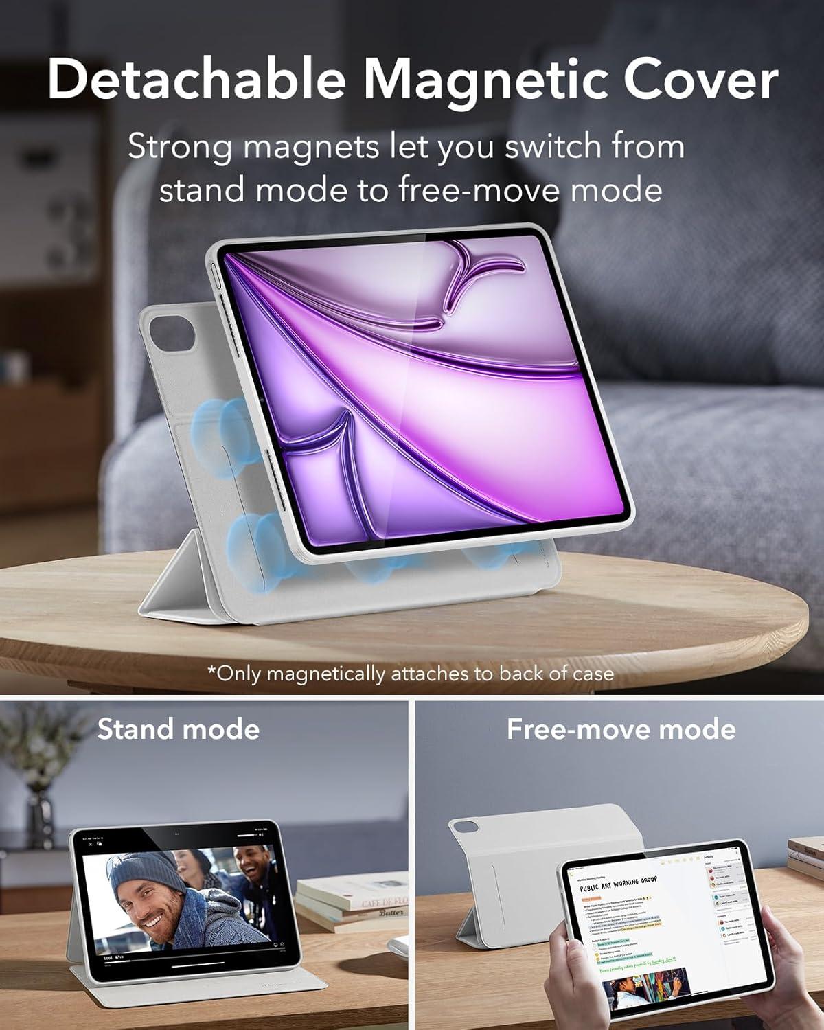 ESR for iPad Air 13 Inch Case (2025/2024) M3/M2 with Pencil Holder, Removable Magnetic Cover, Vertical Stand, Fully Supports Pencil Pro and Pencil(USB-C), Rebound 360 Series, Black(Brilliant White)