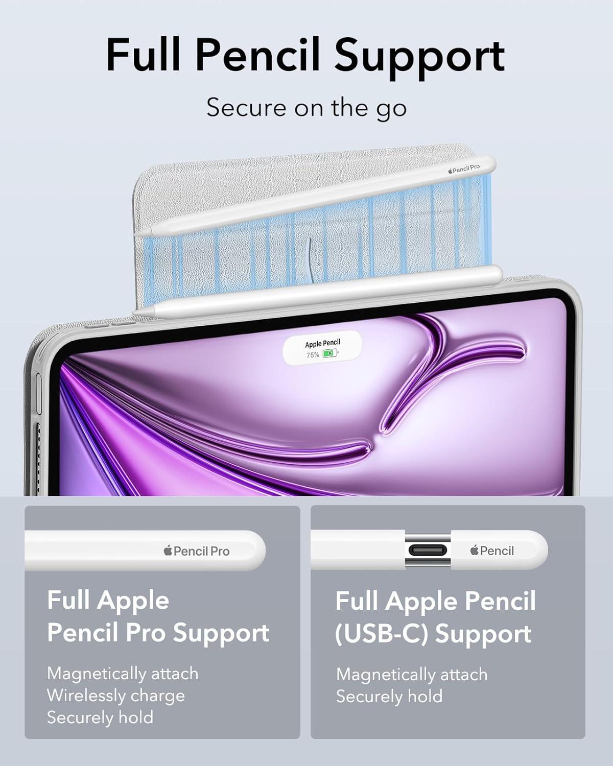 Supports Pencil Pro and Pencil (USB-C): this iPad Air case fully supports Pencil Pro with a recessed side groove for magnetic charging and a magnetic clasp to keep your Pencil secure