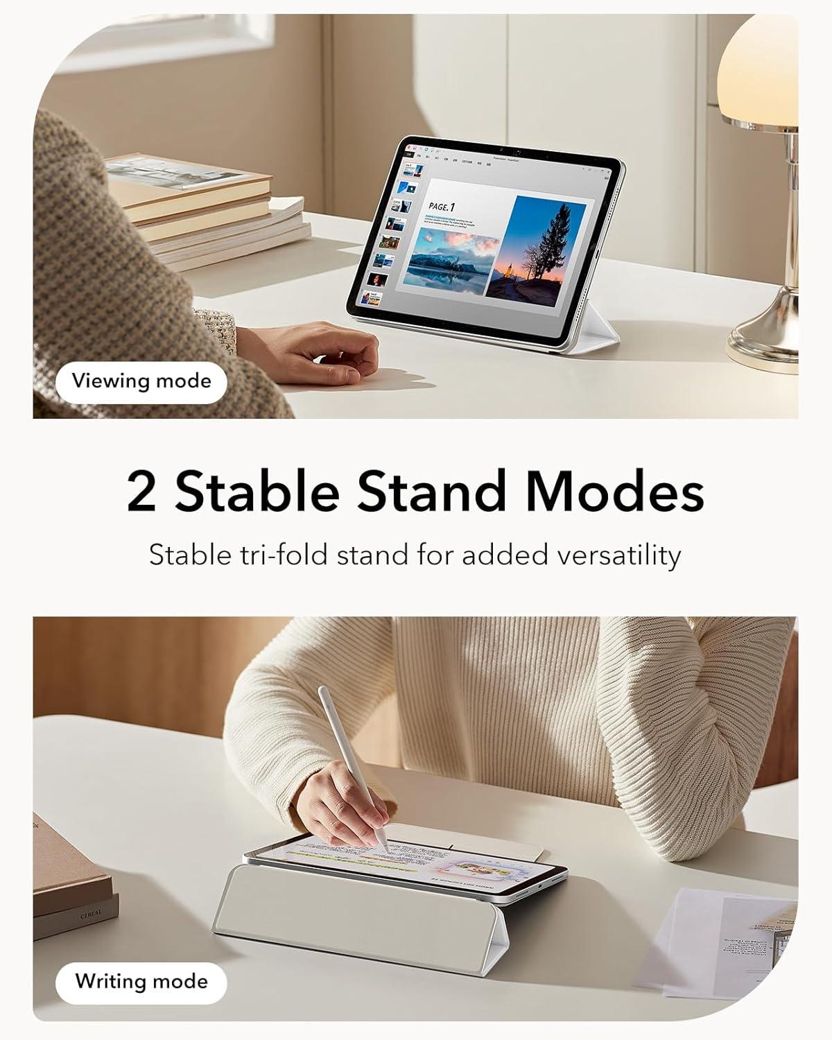 ESR for iPad Air 13 Inch Case M3/M2 (2025/2024), iPad Pro 12.9 6th/5th/4th Gen, Powerful Magnetic Attachment, Slim Trifold Stand Case, Supports Pencil Pro & Pencil (USB-C), Rebound Series, Black(Brilliant White)