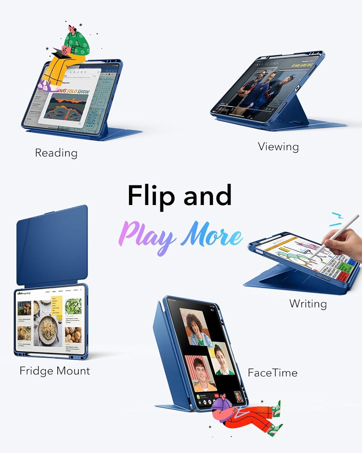 Effortless Vertical Browsing: the ingenious fold and triangular structure design of ESR iPad Air 13 inch case makes vertical browsing effortless, allowing you to use the tablet case for social media, watching short videos, reading, checking news, playing games, drawing, writing, and more