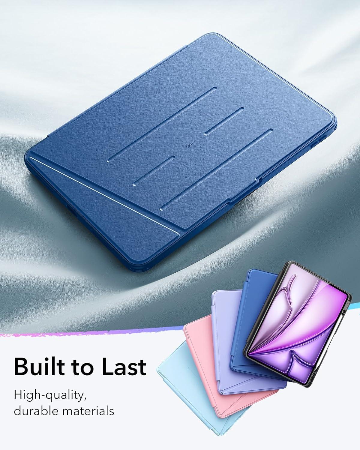ESR for iPad Air 13 Inch Case M3/M2 (2025/2024), Vertical Stand Cover, Multi Stand Angles, Ultra-Stable Case with Pencil Holder, Flip Series, Black(Blue)