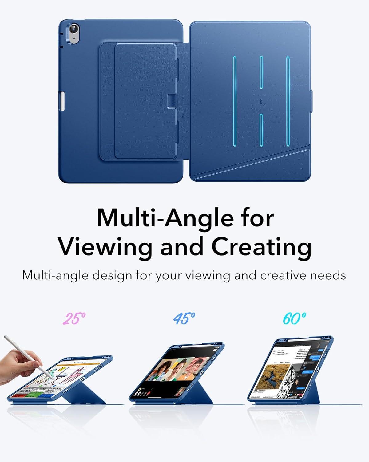 Multi-Angle Design: the iPad Air case features two stand modes, 45°-60° for viewing, perfect for watching videos, working, FaceTiming, and more, and 25° for writing mode, ideal for writing, painting, or other creative tasks