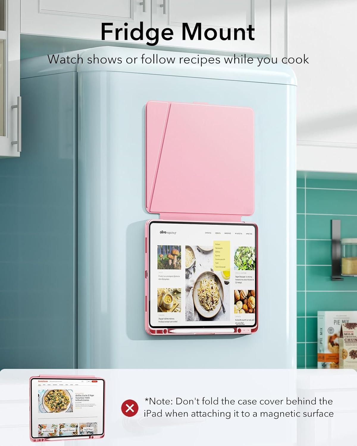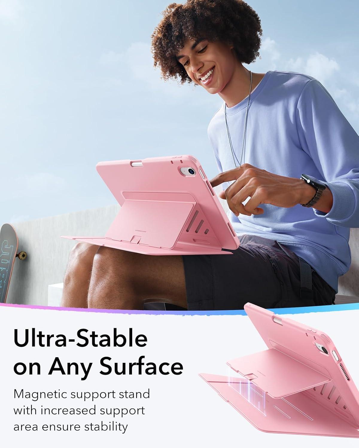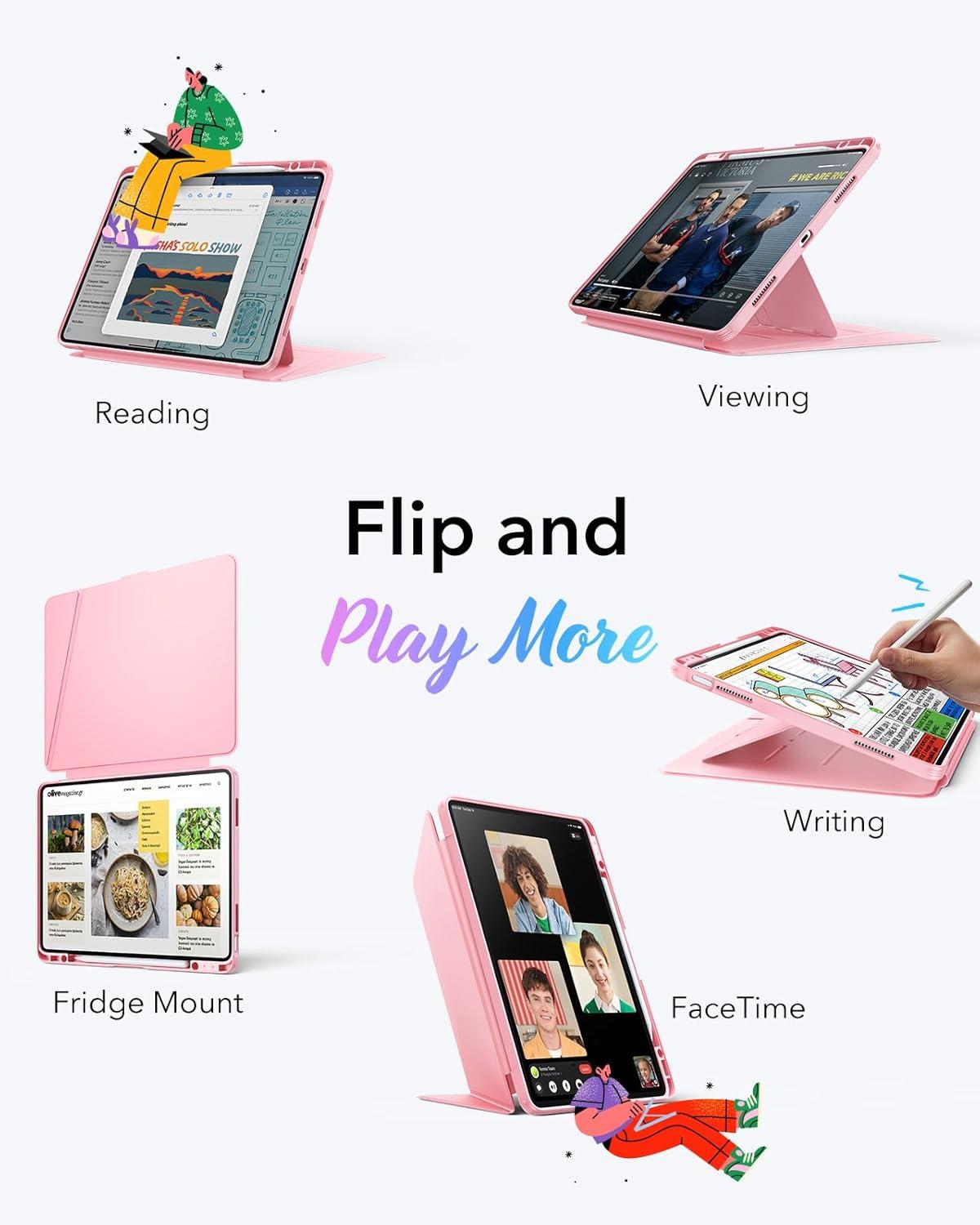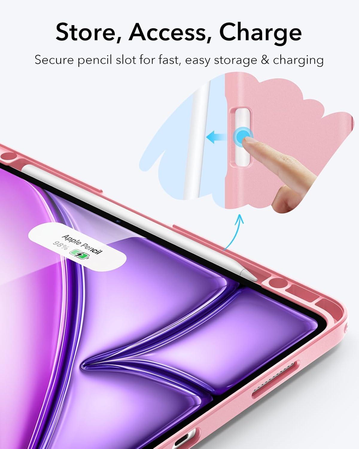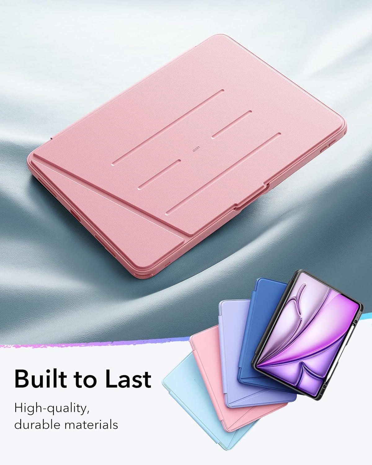 ESR for iPad Air 13 Inch Case M3/M2 (2025/2024), Vertical Stand Cover, Multi Stand Angles, Ultra-Stable Case with Pencil Holder, Flip Series, Black(Pink)