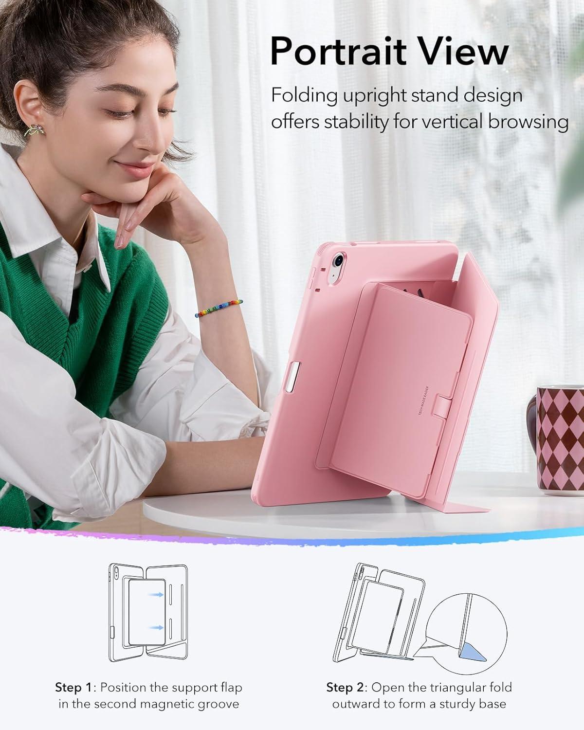 Effortless Vertical Browsing: the ingenious fold and triangular structure design of ESR iPad Air 13 inch case makes vertical browsing effortless, allowing you to use the tablet case for social media, watching short videos, reading, checking news, playing games, drawing, writing, and more