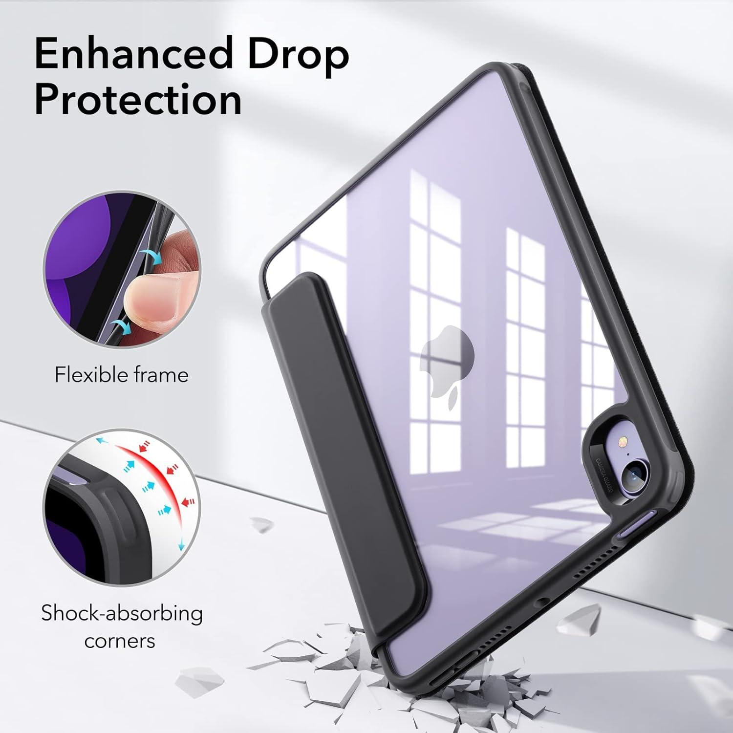 ESR for iPad Mini 6 Case, iPad Mini 6th Generation Case (2021), Detachable Magnetic Cover, Hard Back, Auto Sleep/Wake, Vertical Stand, Supports Pencil Pro, Frosted Black(Clear Black)
