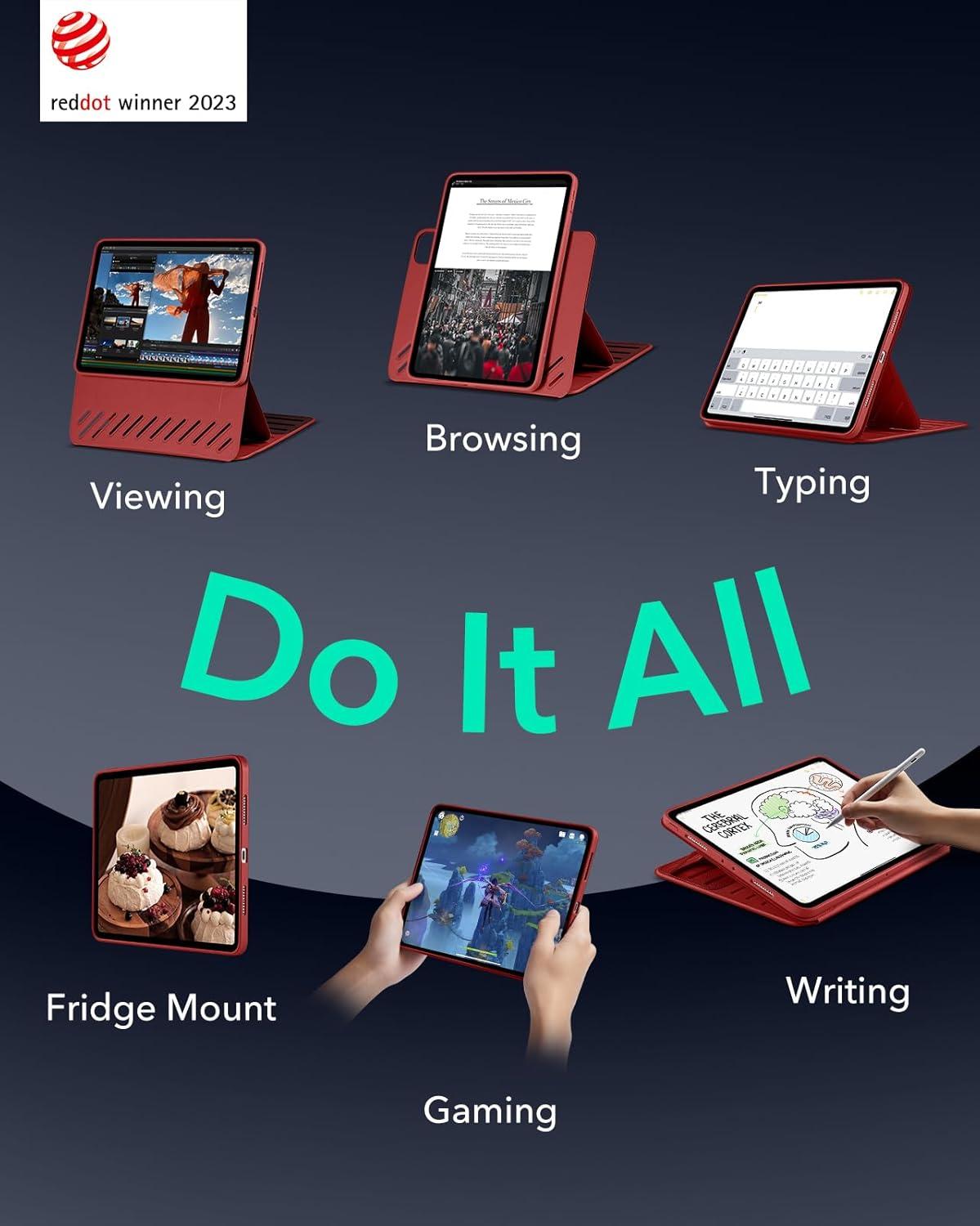 ESR for iPad Pro 11 Inch Case (2022/2021/2020/2018, 4th/3rd/2nd/1st Generation), Removable Magnetic Cover, Adjustable Portrait/Landscape Stand with Raised Display View, 9 Standing Angles, Blue(Red)